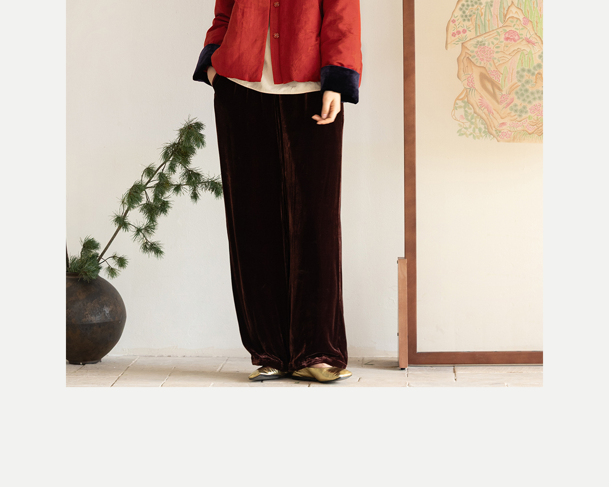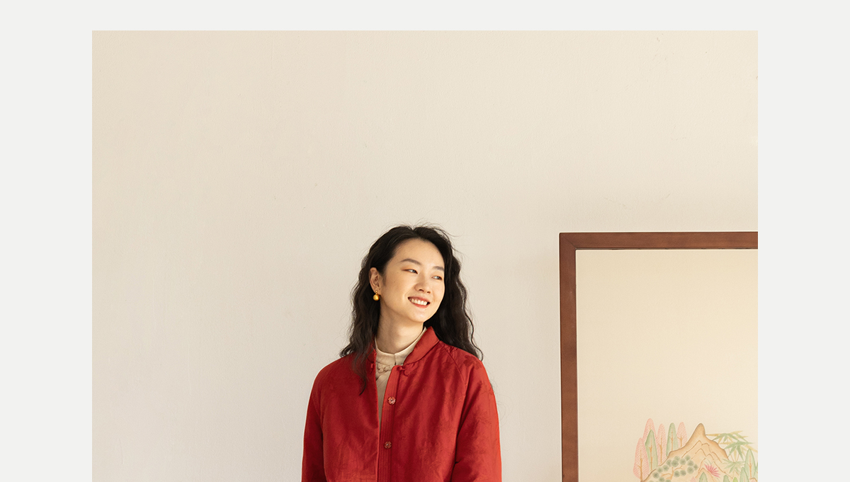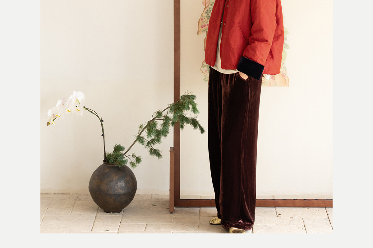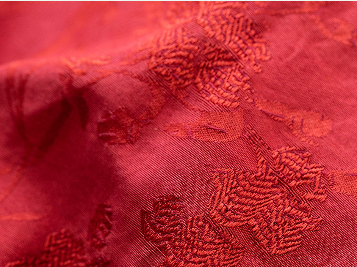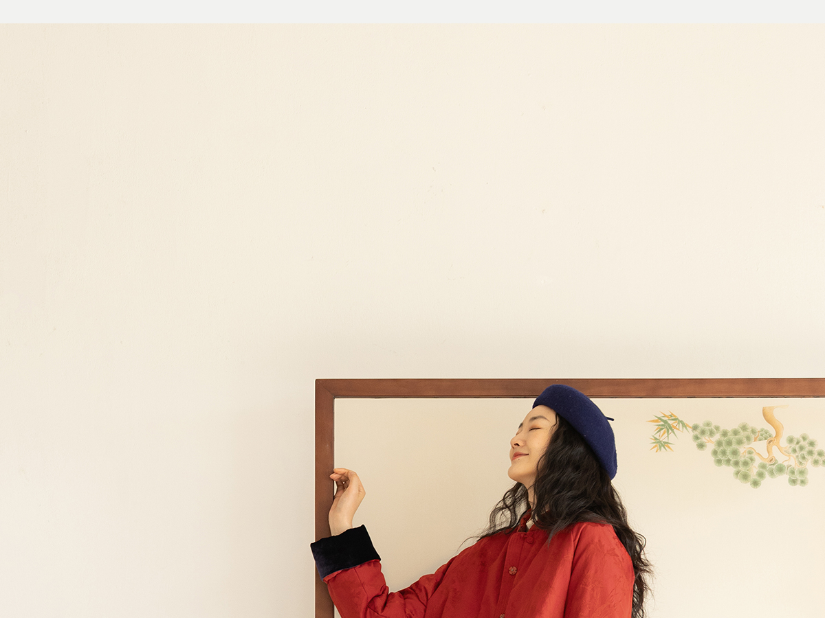 牧衣游原创 真丝混纺提花高蓬松红嘴雁绒羽绒服红色中式 松间照