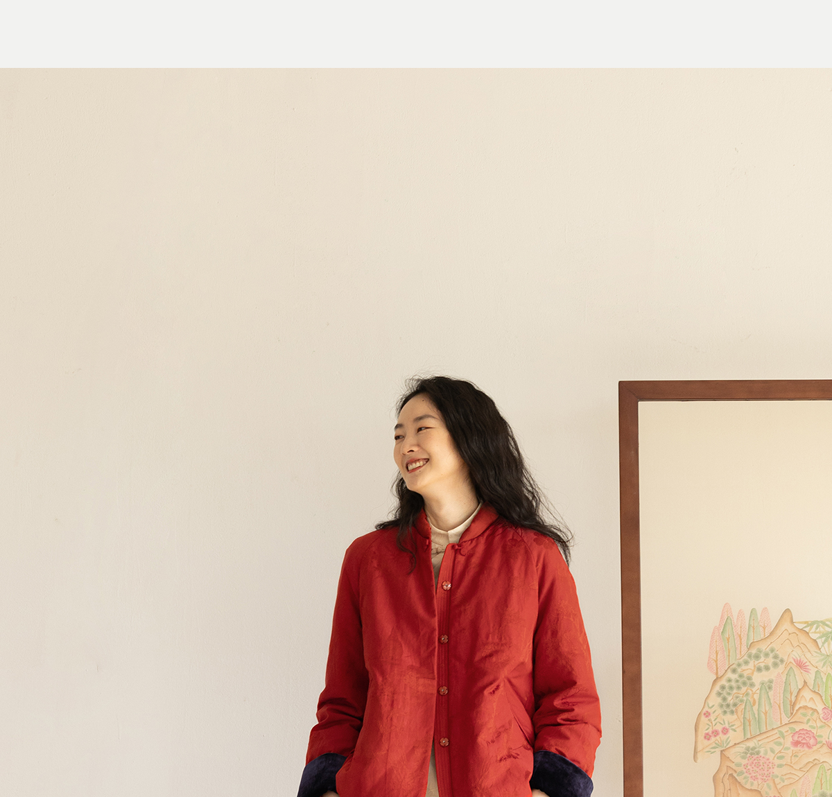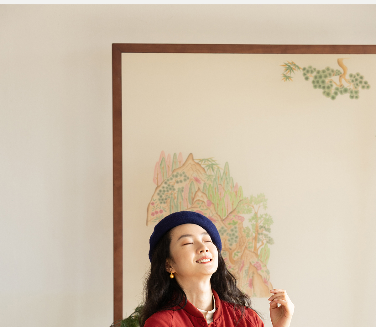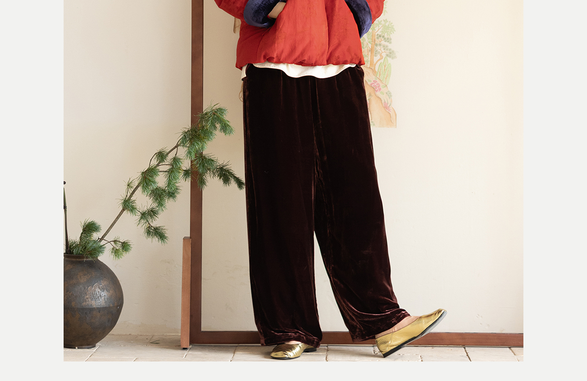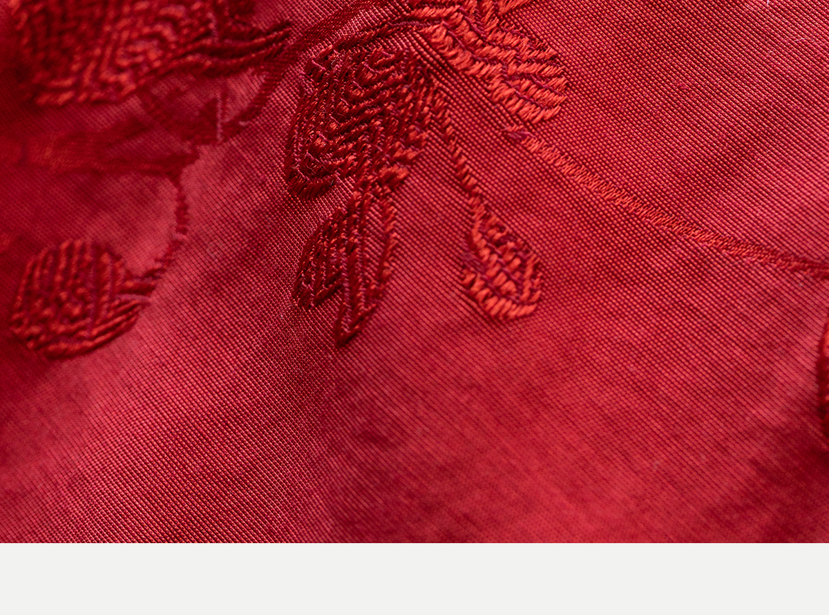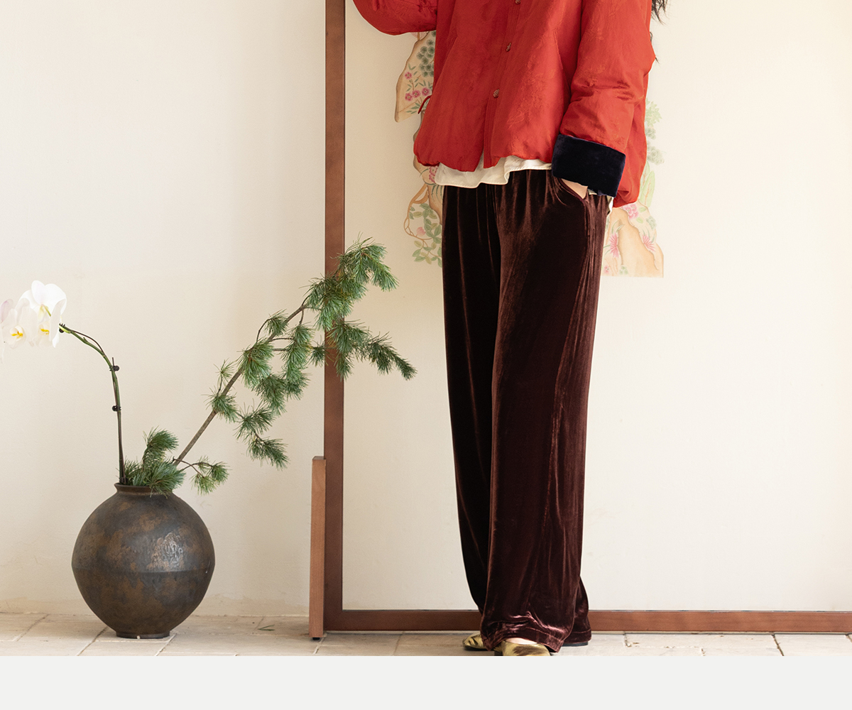 牧衣游原创 真丝混纺提花高蓬松红嘴雁绒羽绒服红色中式 松间照