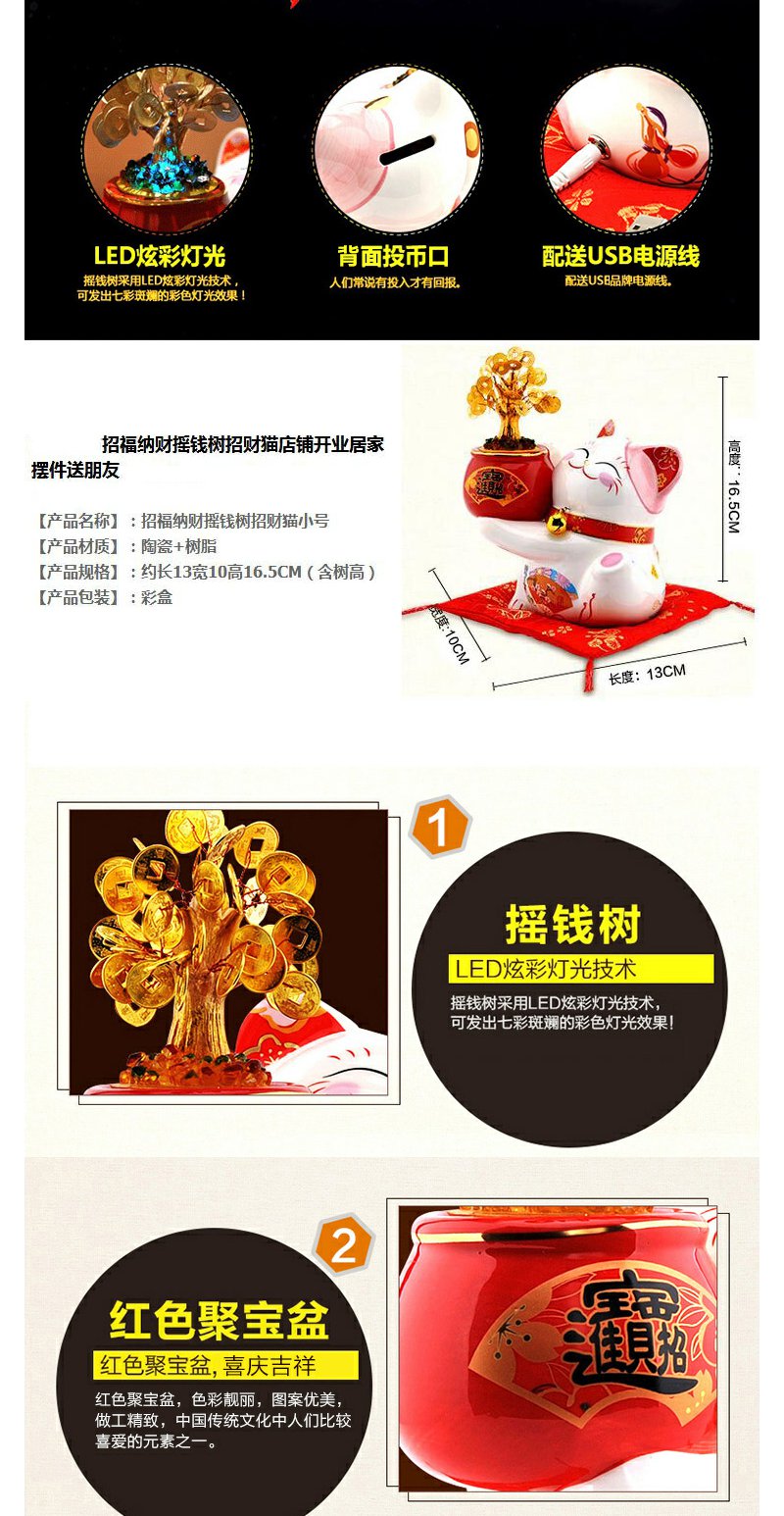 招财猫小摆件创意礼品发光摇钱树 招福纳财猫(小)【不支持补差,非质量问题不退不换】S