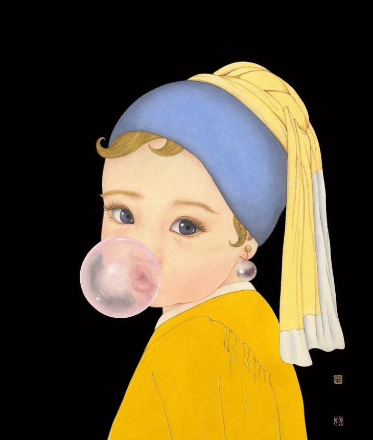 吹泡泡的女孩/ Bubble gum girl41cm×32cm纸本设色/ Ink and Colour on Paper2018