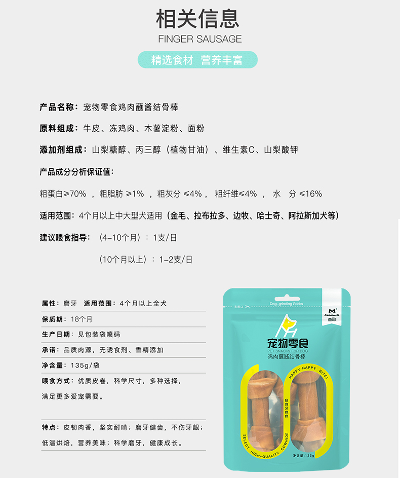益和鸡肉蘸酱结骨棒狗零食耐咬幼犬磨牙棒除口臭宠物用品中大型犬