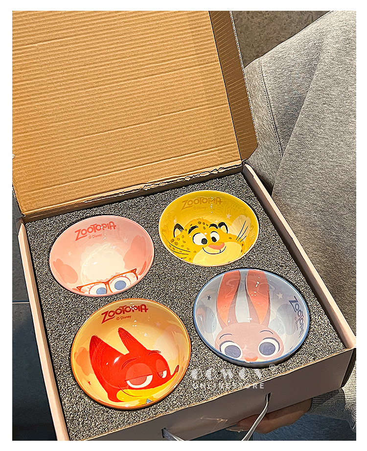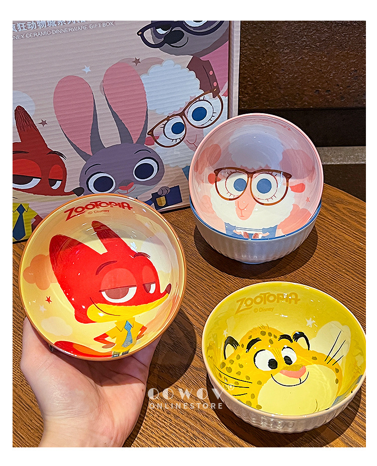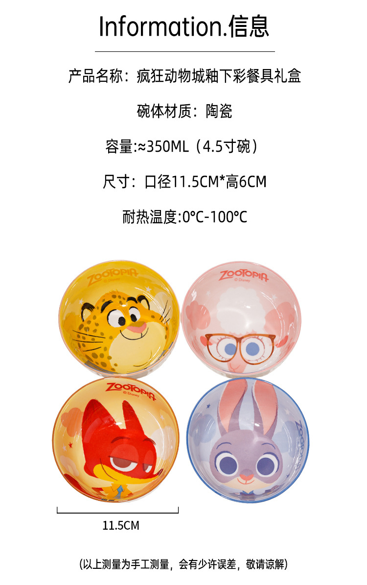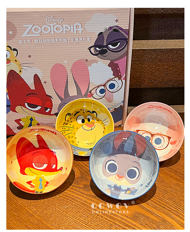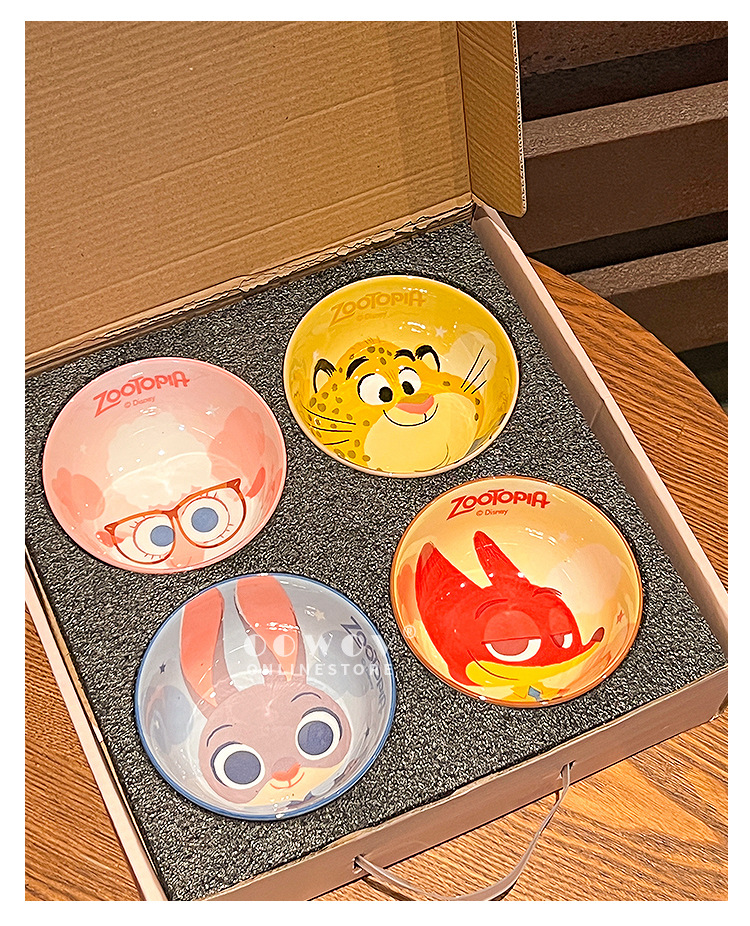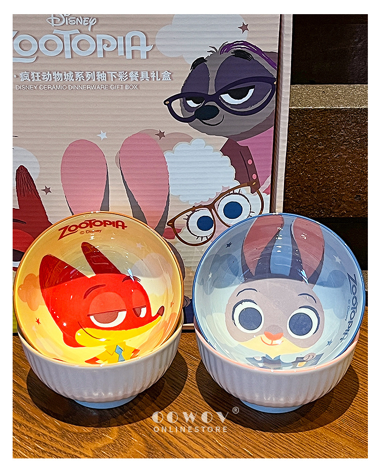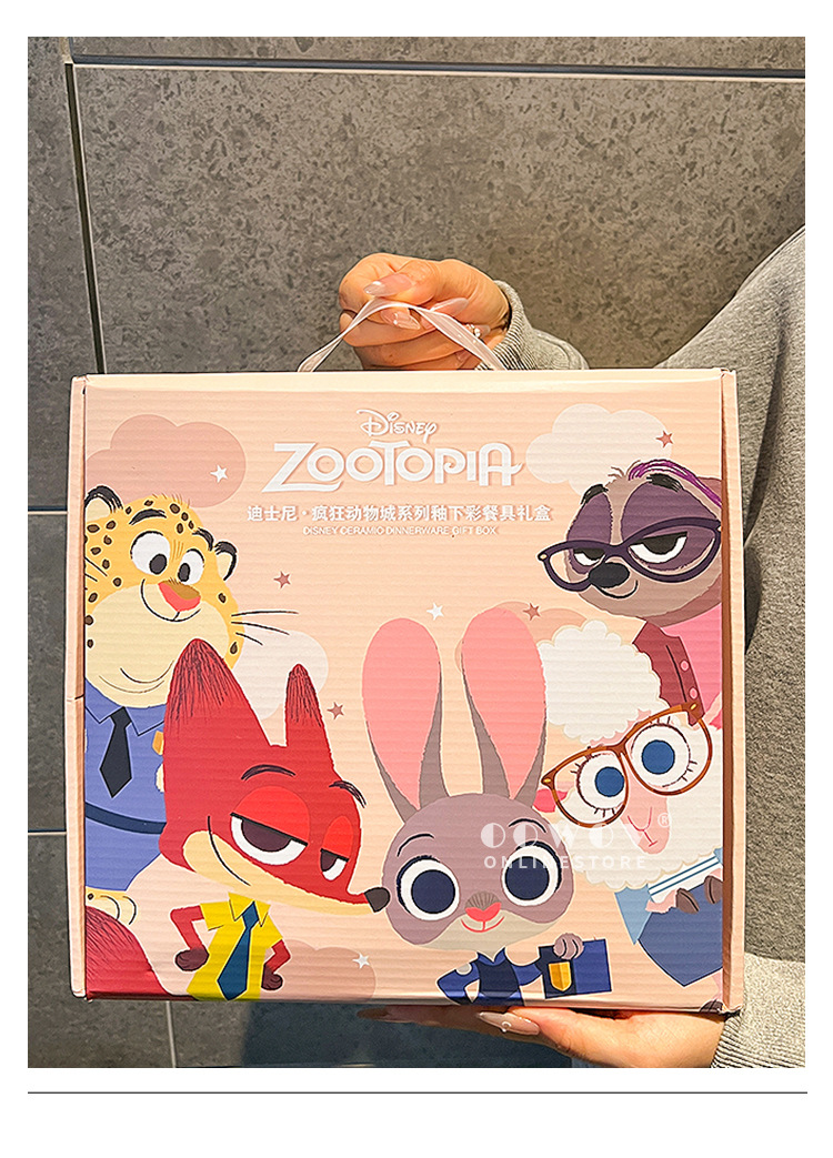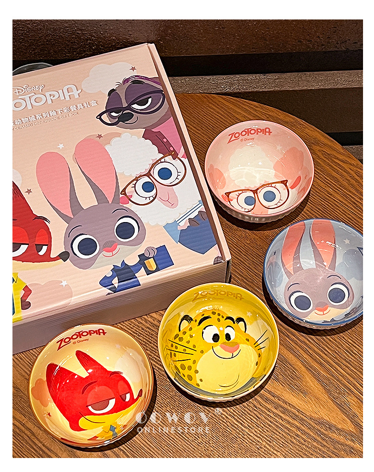 【迪士尼疯狂动物城餐具礼盒】碗身绘有兔朱迪、狐尼克等超人气角色,活泼可爱,让吃饭变成一场视觉与味觉的双重享受-SKSM
