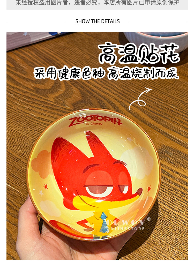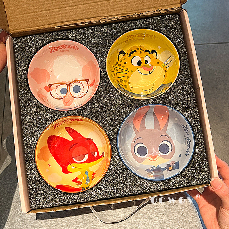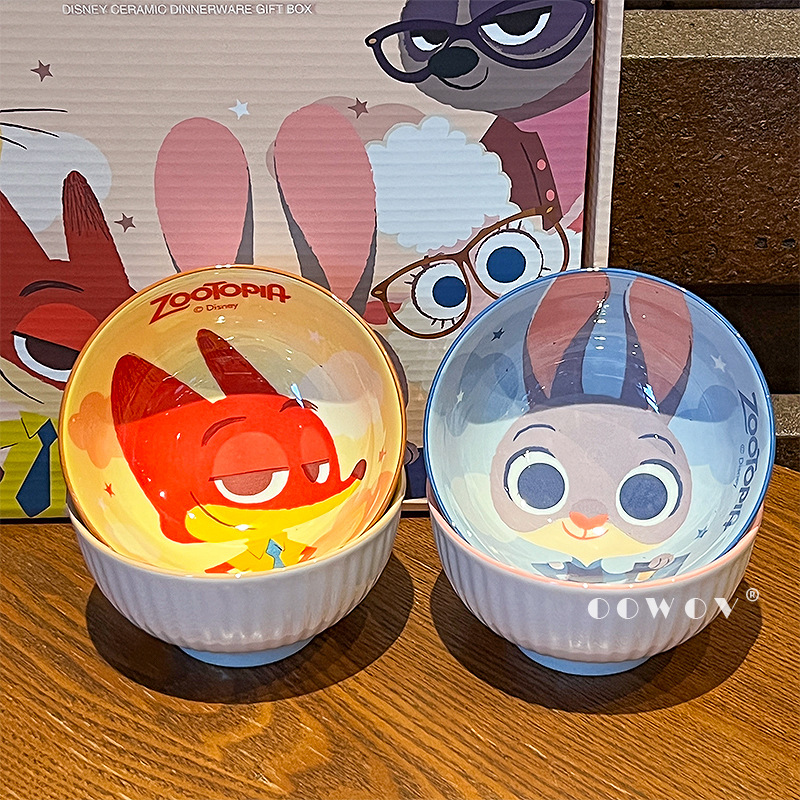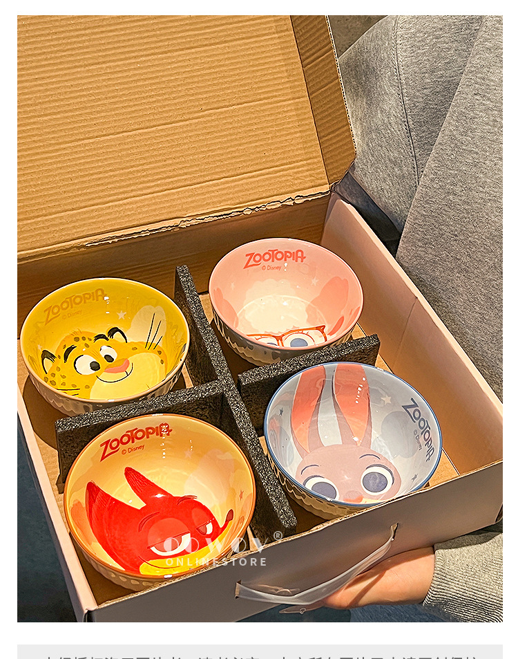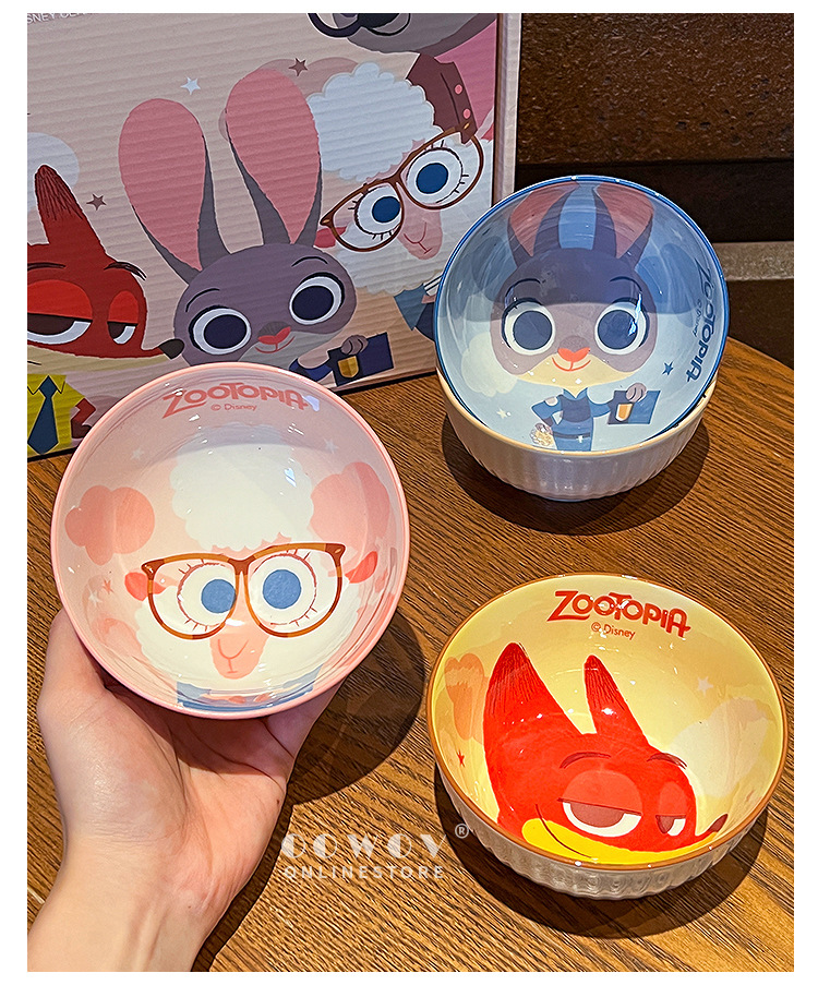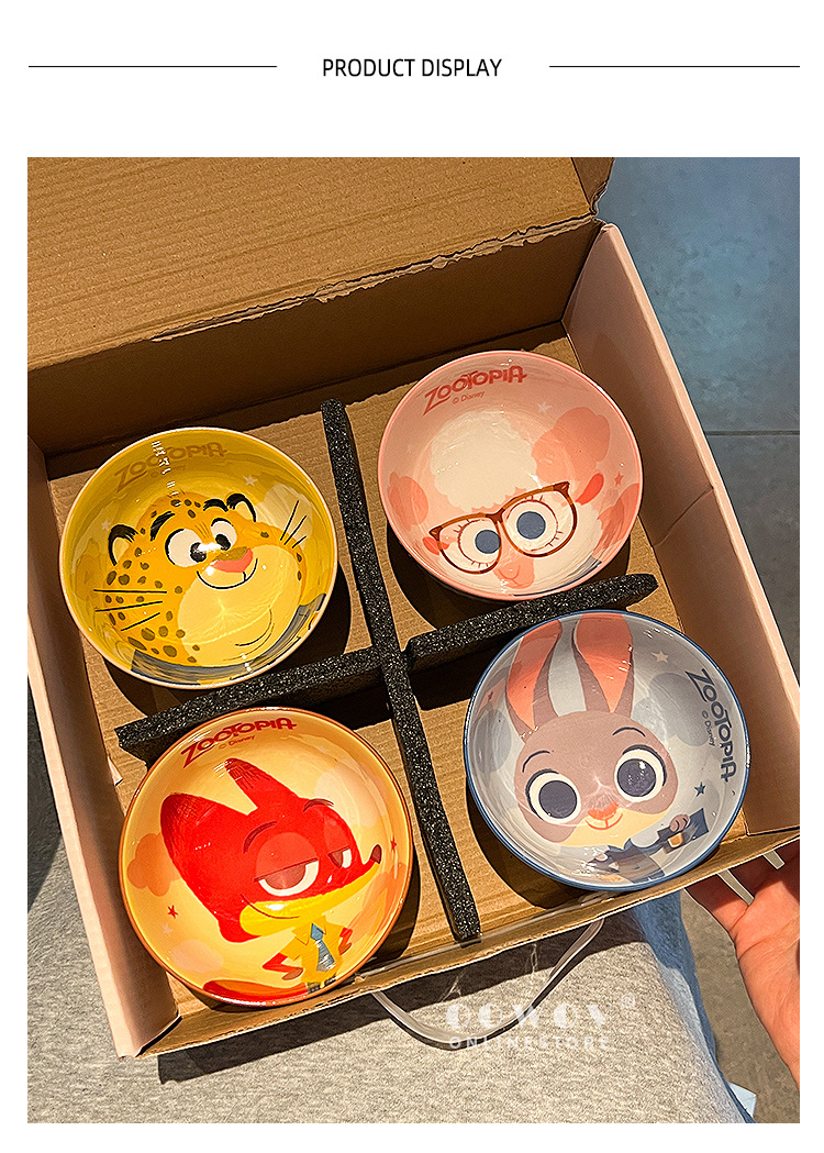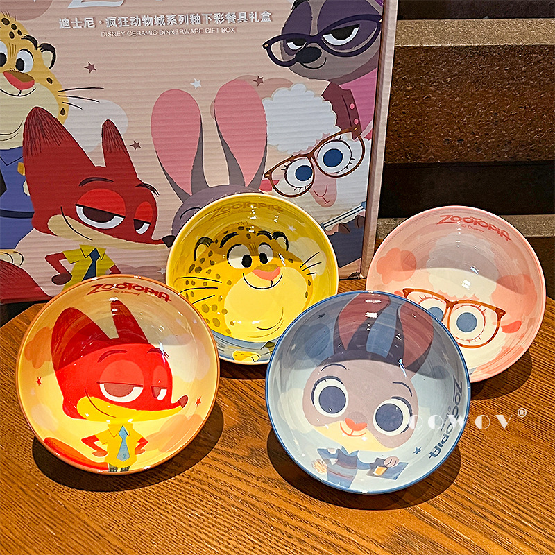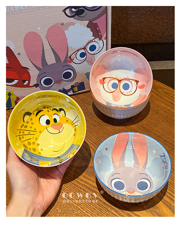 【迪士尼疯狂动物城餐具礼盒】碗身绘有兔朱迪、狐尼克等超人气角色,活泼可爱,让吃饭变成一场视觉与味觉的双重享受-SKSM