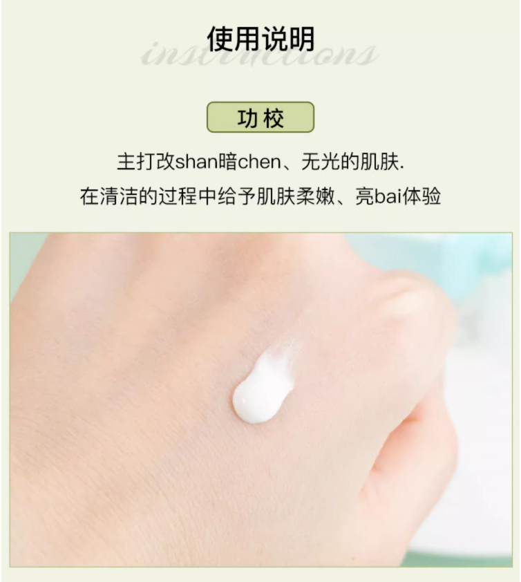氨基酸配方,软糯细腻的乳液质地,轻揉即可产生绵密的泡沫,快速带走脸部污垢油脂!