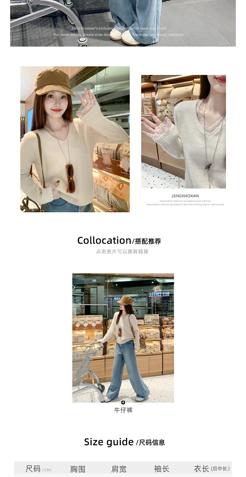 【129元任选2件】现货!蕾丝拼接长袖针织衫