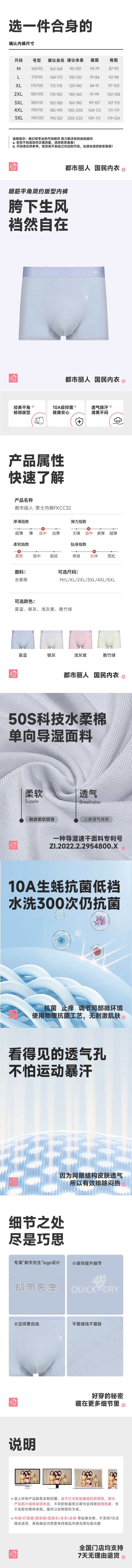 都市丽人男士男士内裤水柔棉平角裤明筋棉平角FKCC32