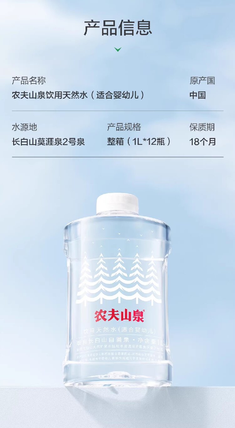 农夫山泉婴儿水母婴水天然饮用水12*1L