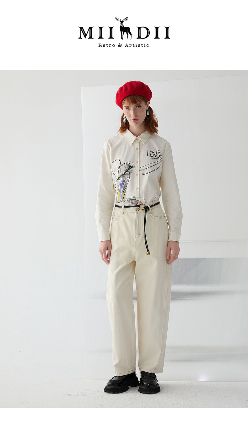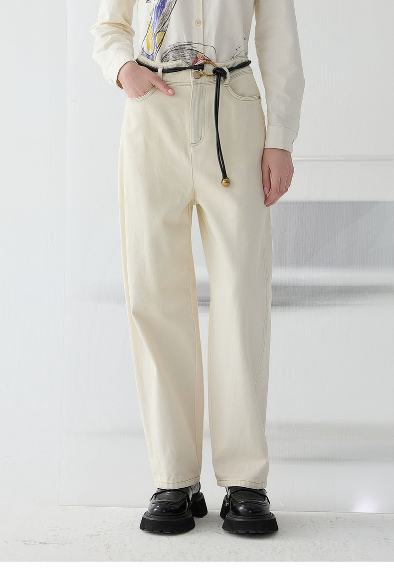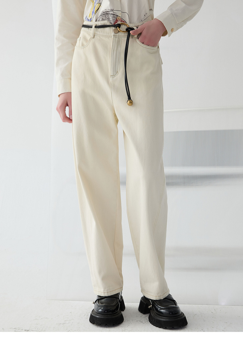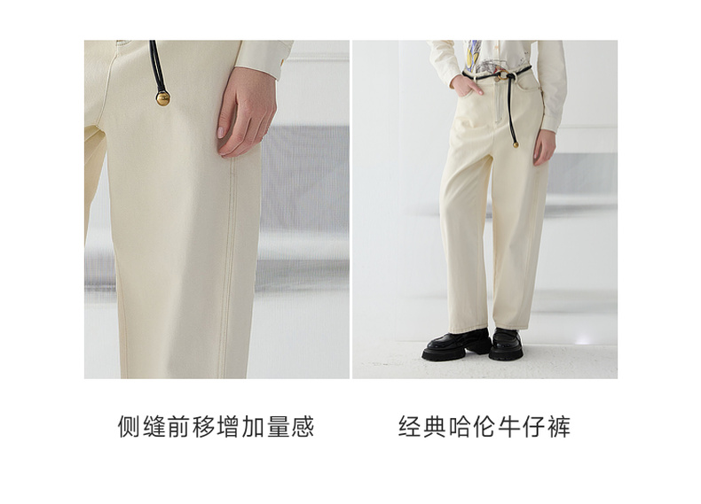 谜底白色牛仔裤2025春款弧形设计时髦香蕉裤裤宽松长裤251MK0141