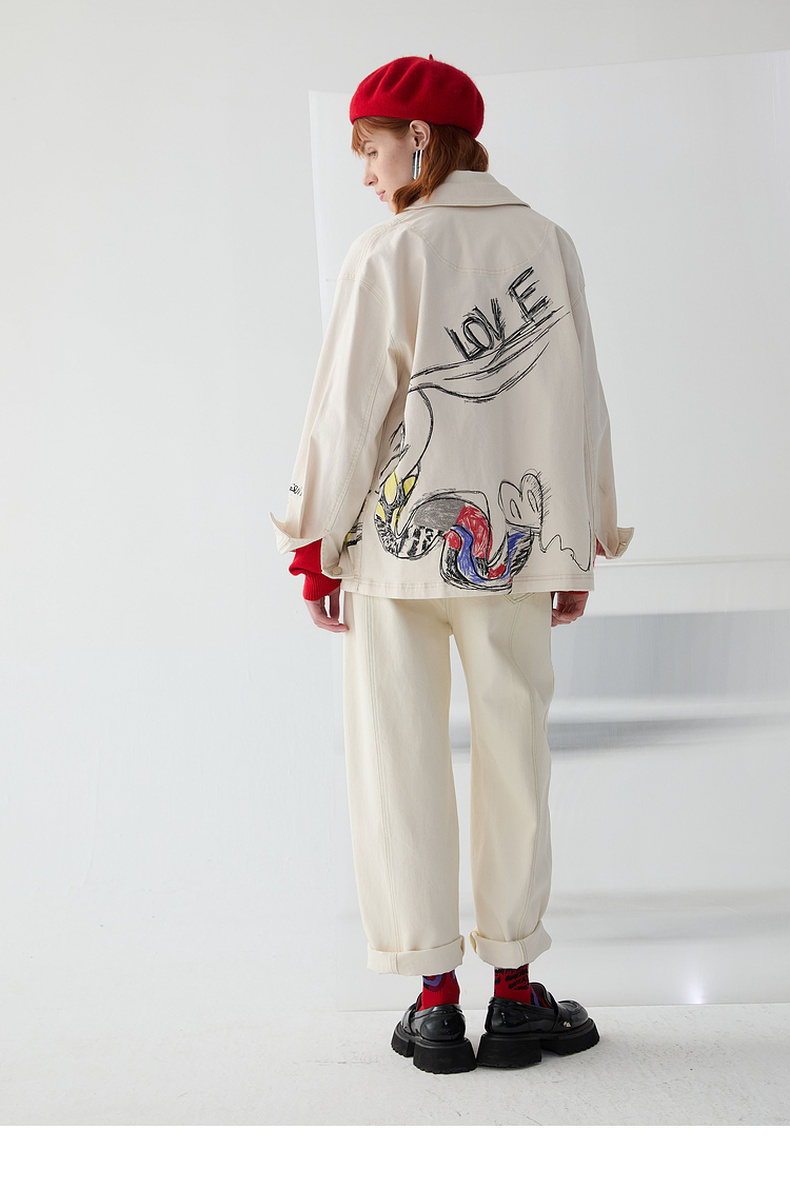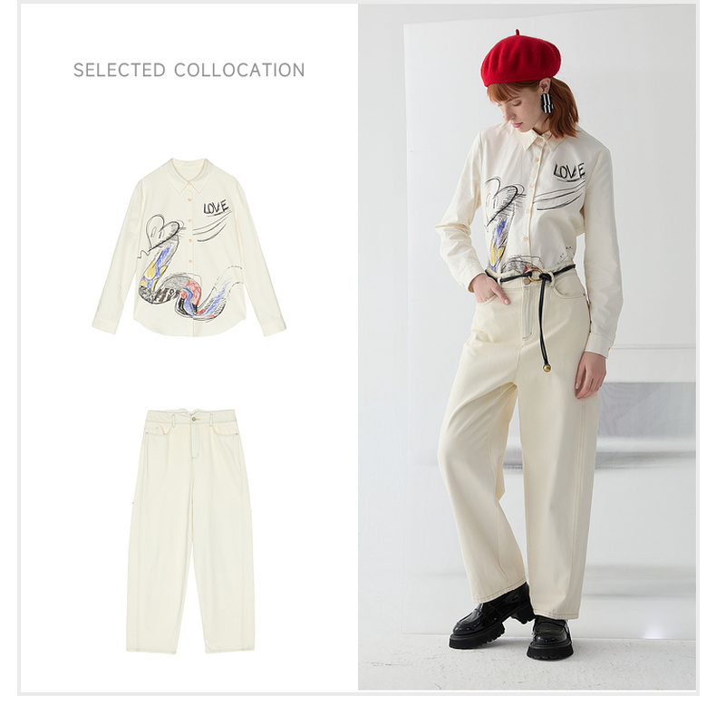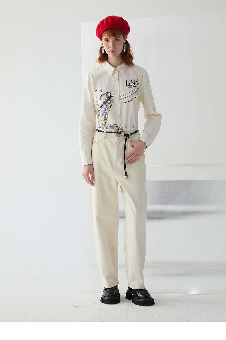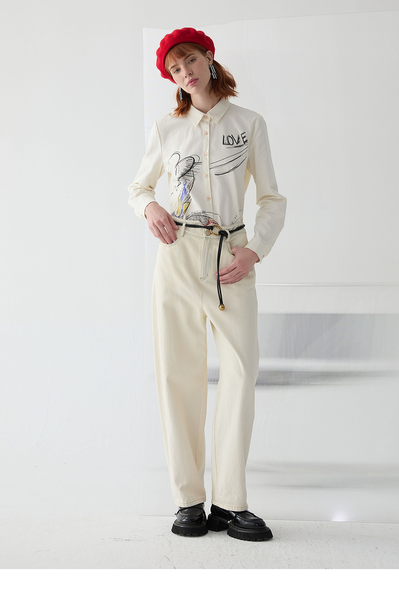 谜底白色牛仔裤2025春款弧形设计时髦香蕉裤裤宽松长裤251MK0141
