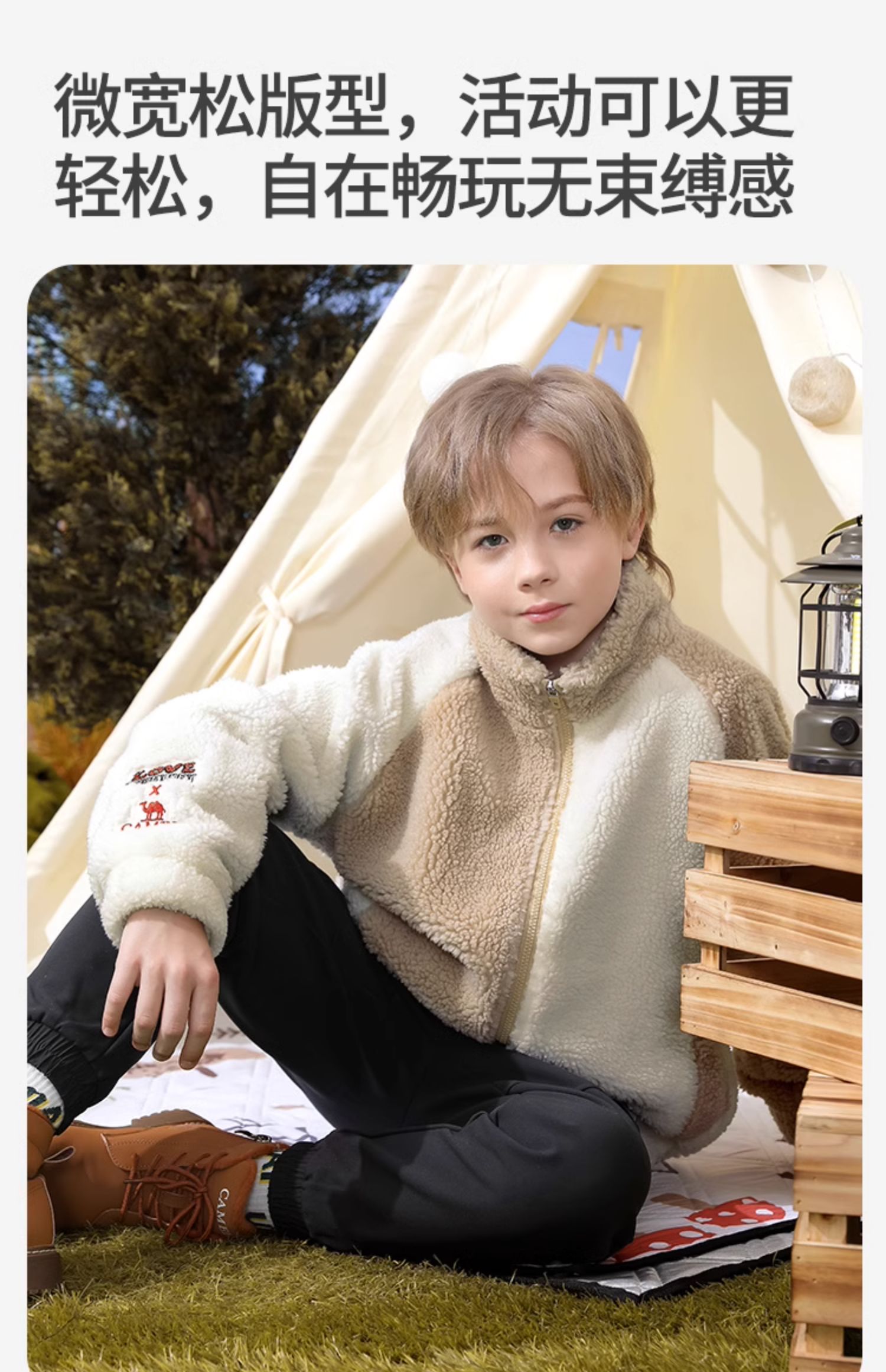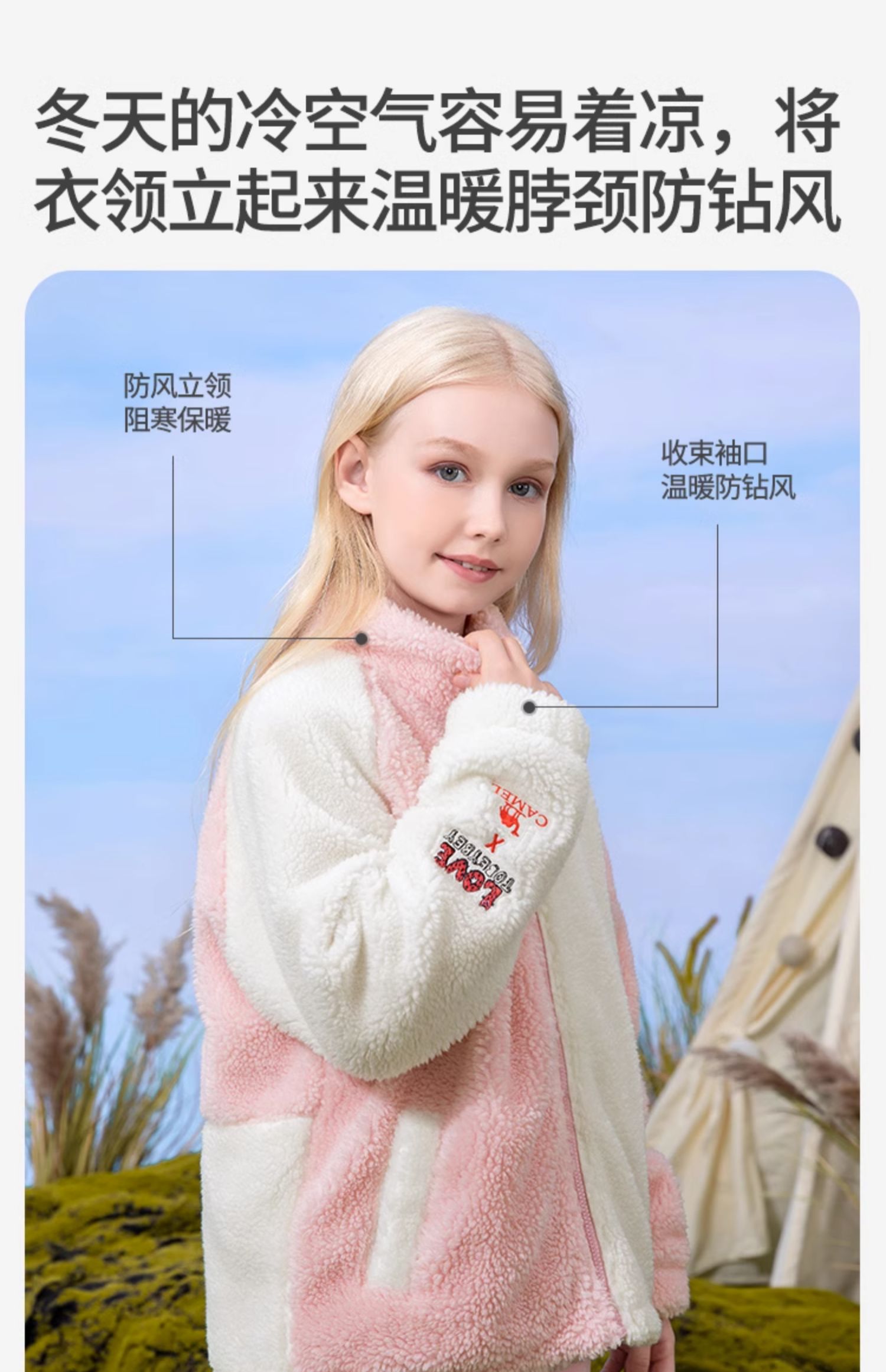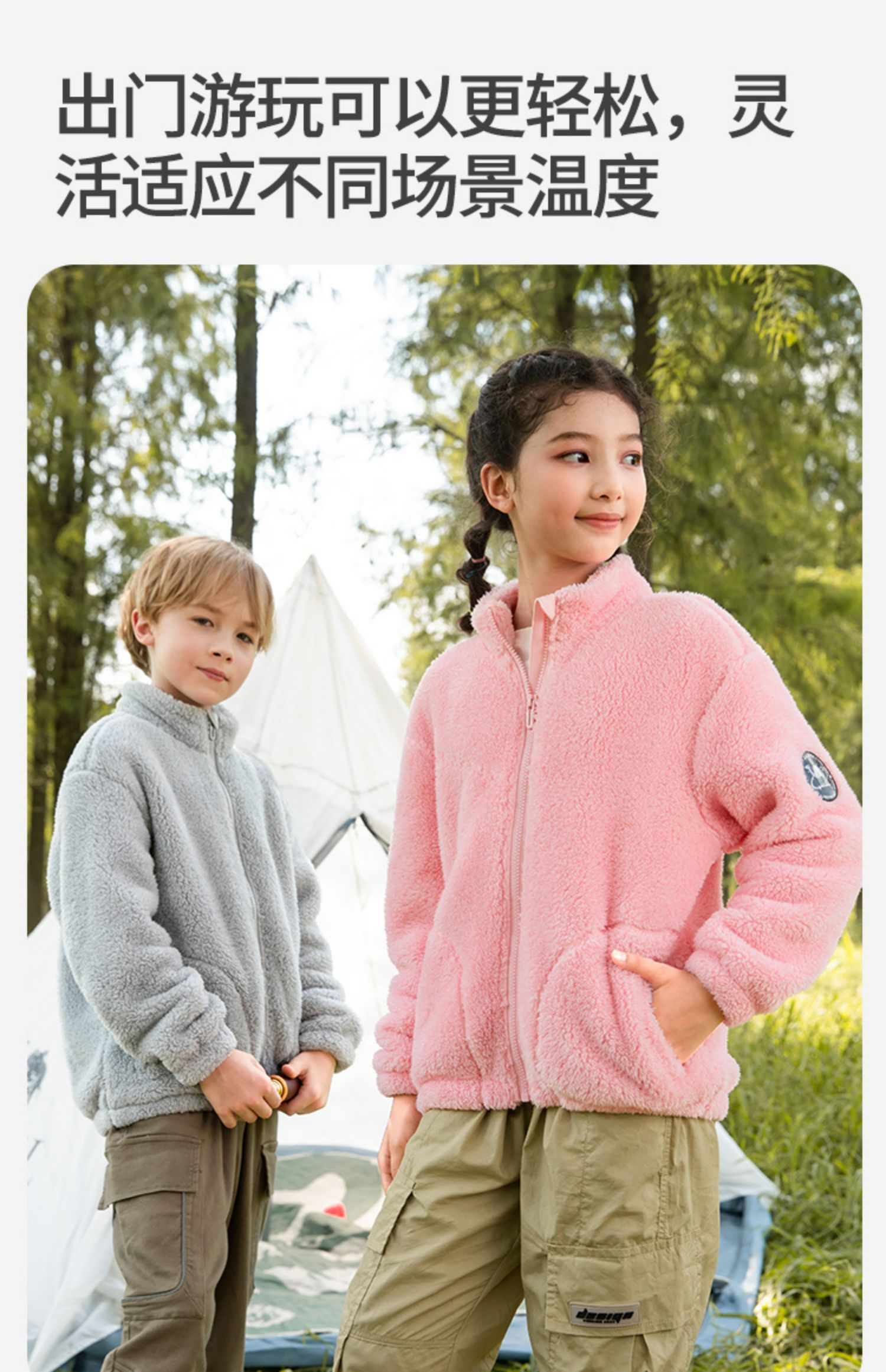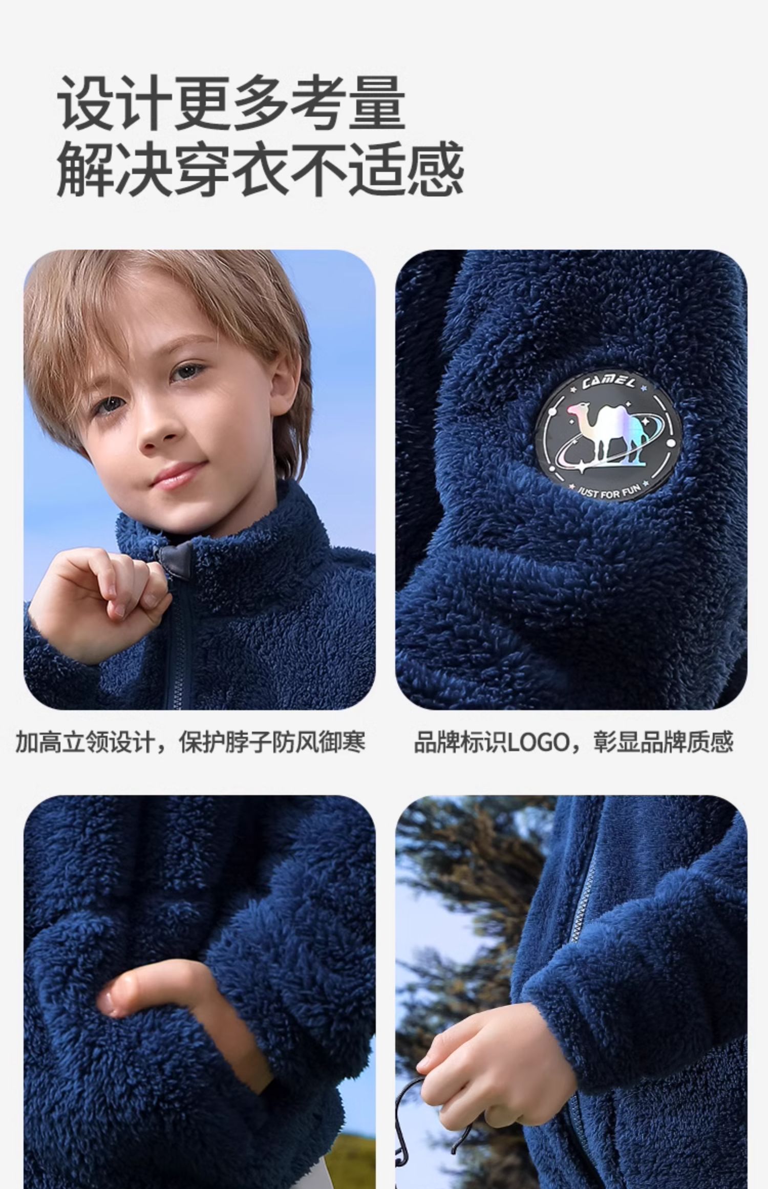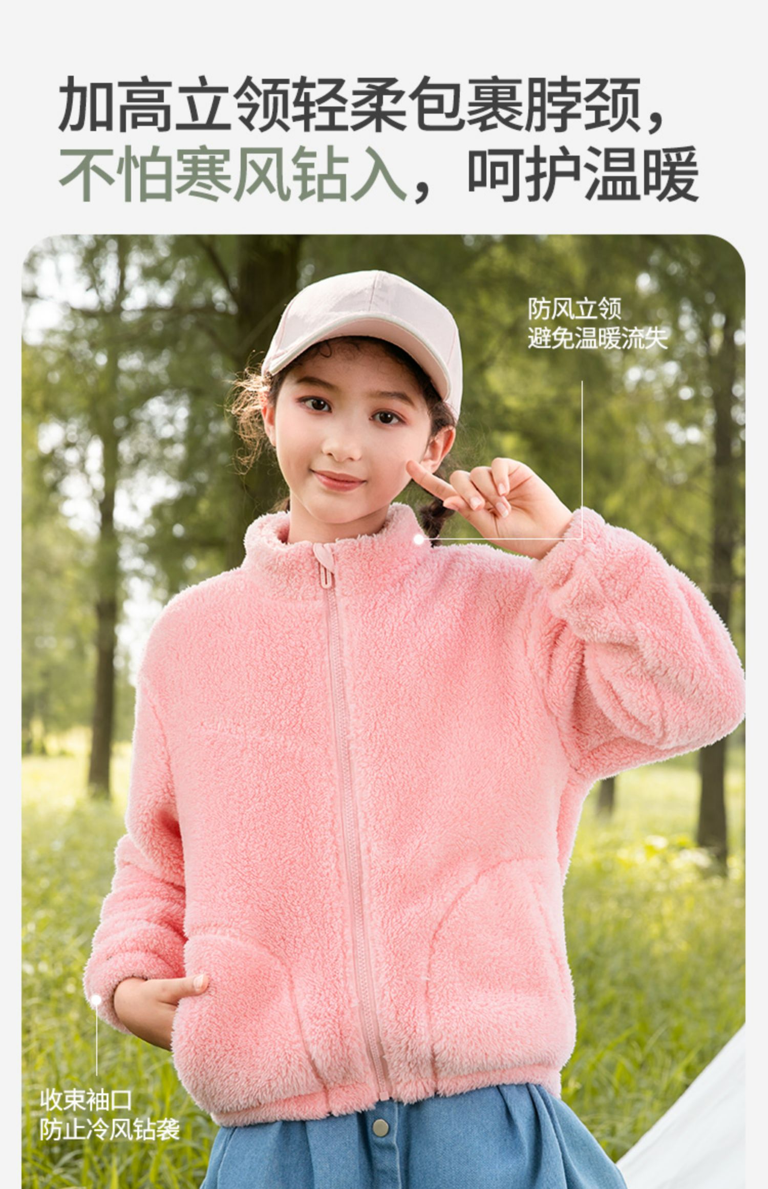 小骆驼儿童抓绒衣2024秋冬防风保暖珊瑚绒女童大童摇粒绒男童外套 D63CAIP011_A0W645951_DR32263797_A1W6NX807