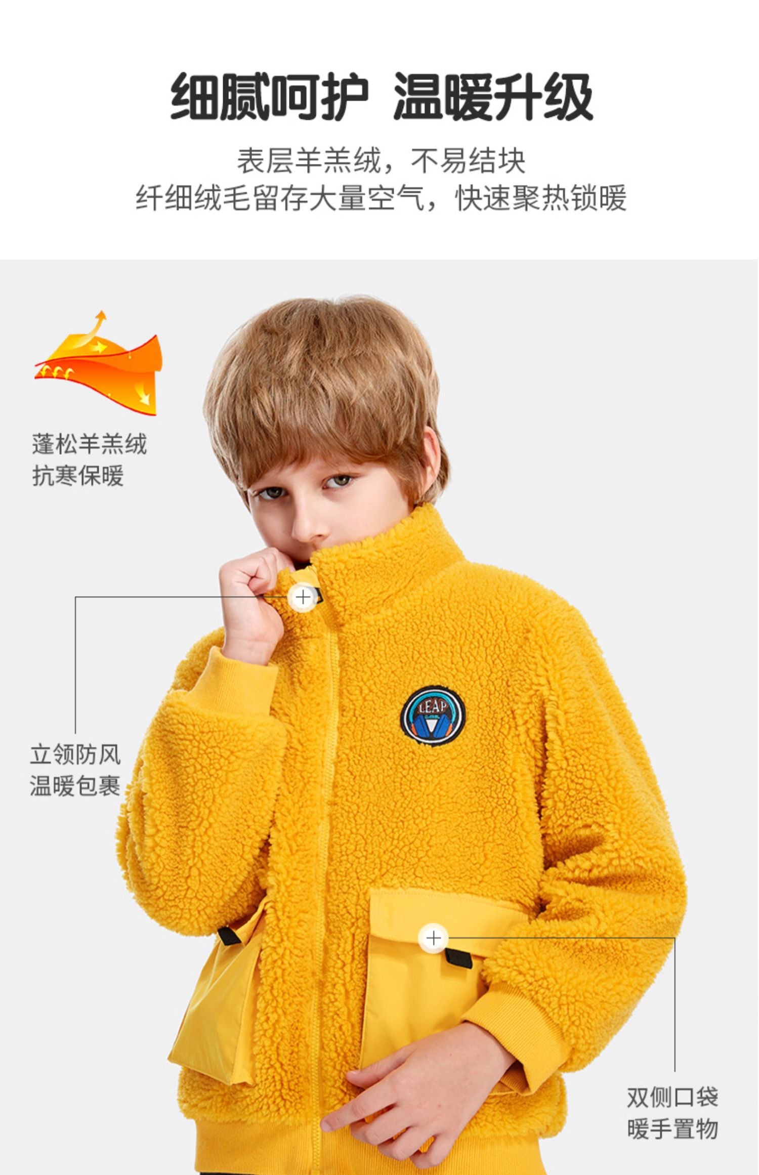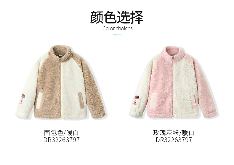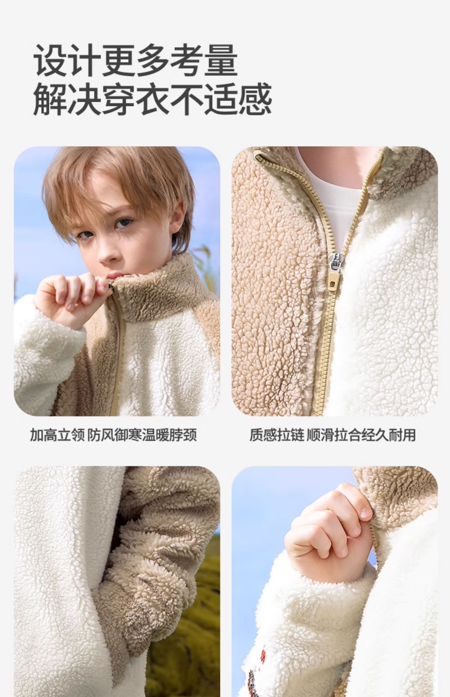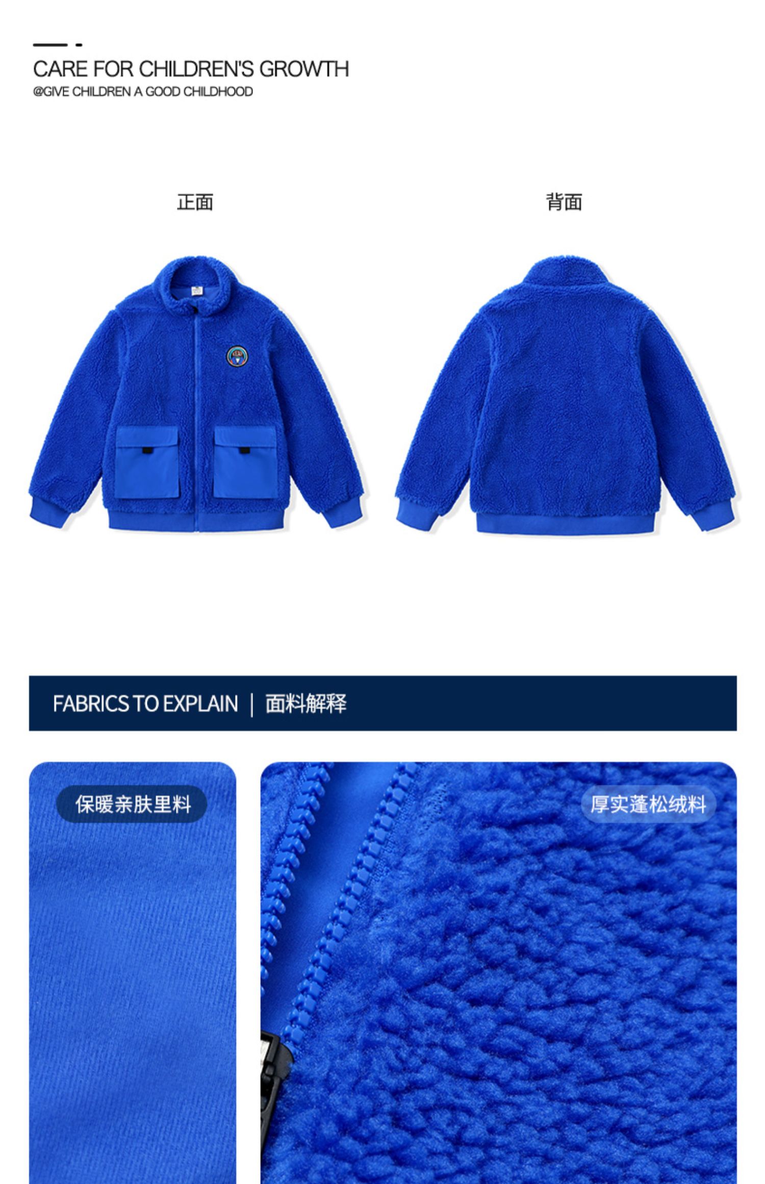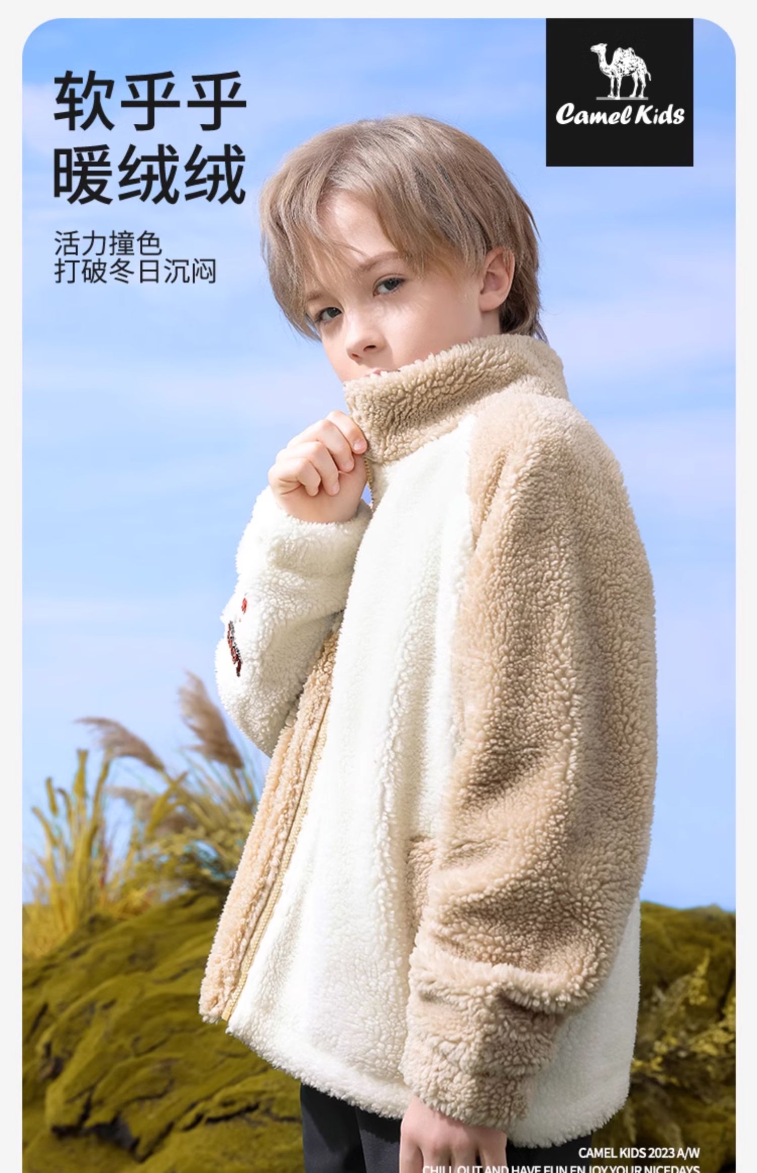 小骆驼儿童抓绒衣2024秋冬防风保暖珊瑚绒女童大童摇粒绒男童外套 D63CAIP011_A0W645951_DR32263797_A1W6NX807