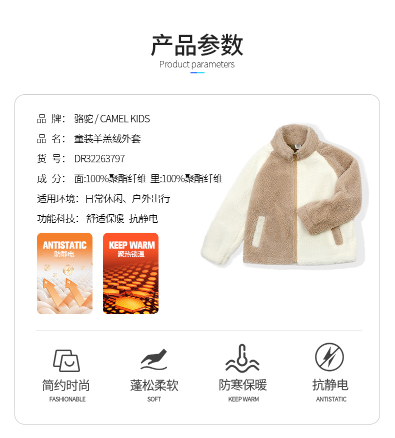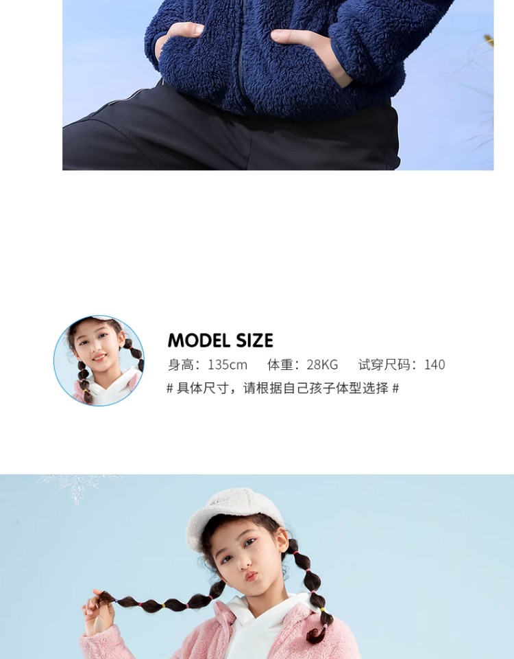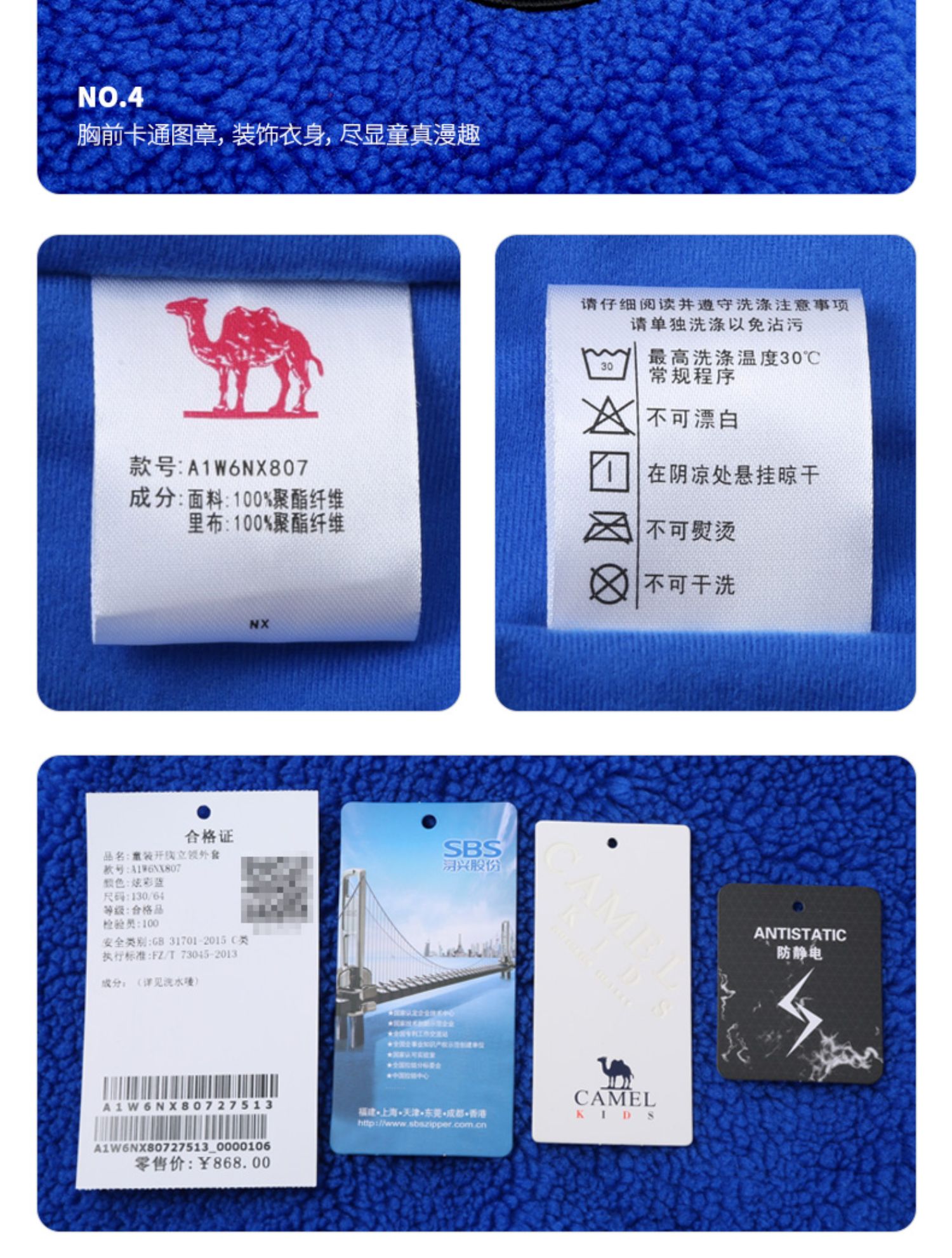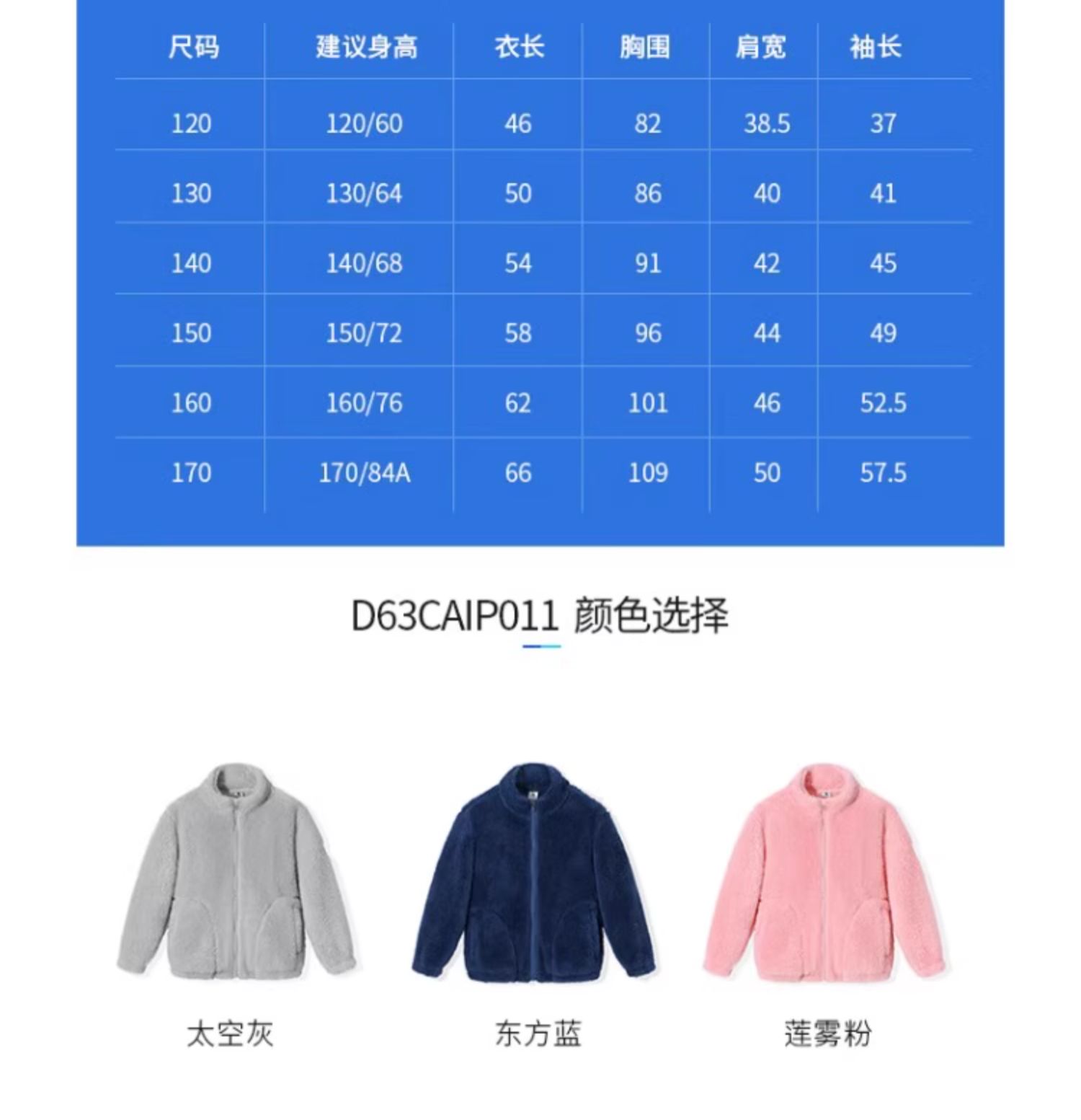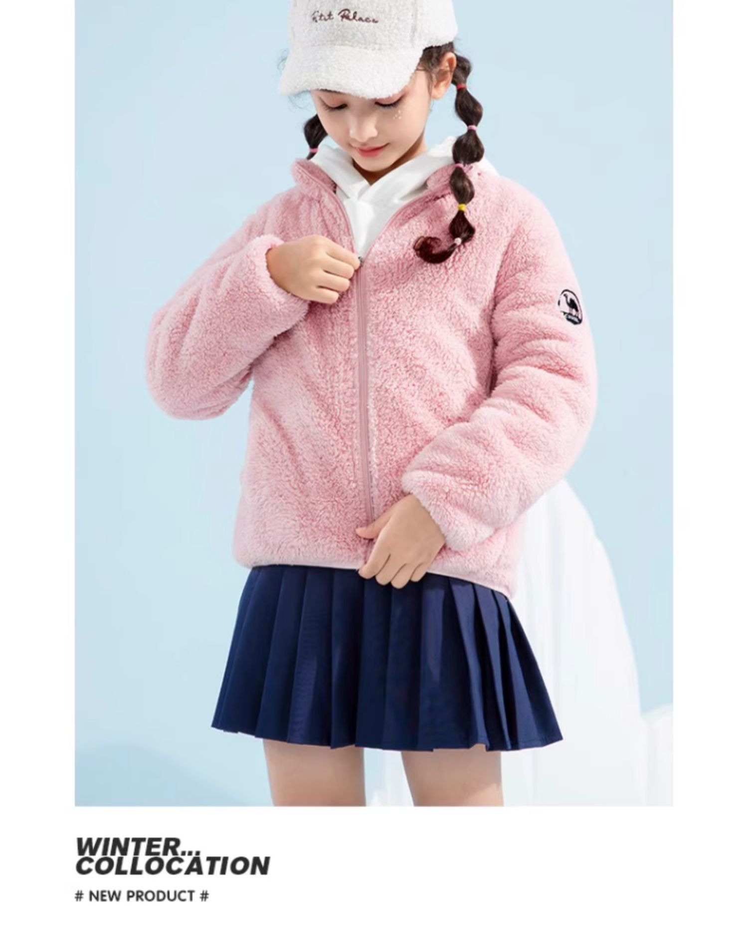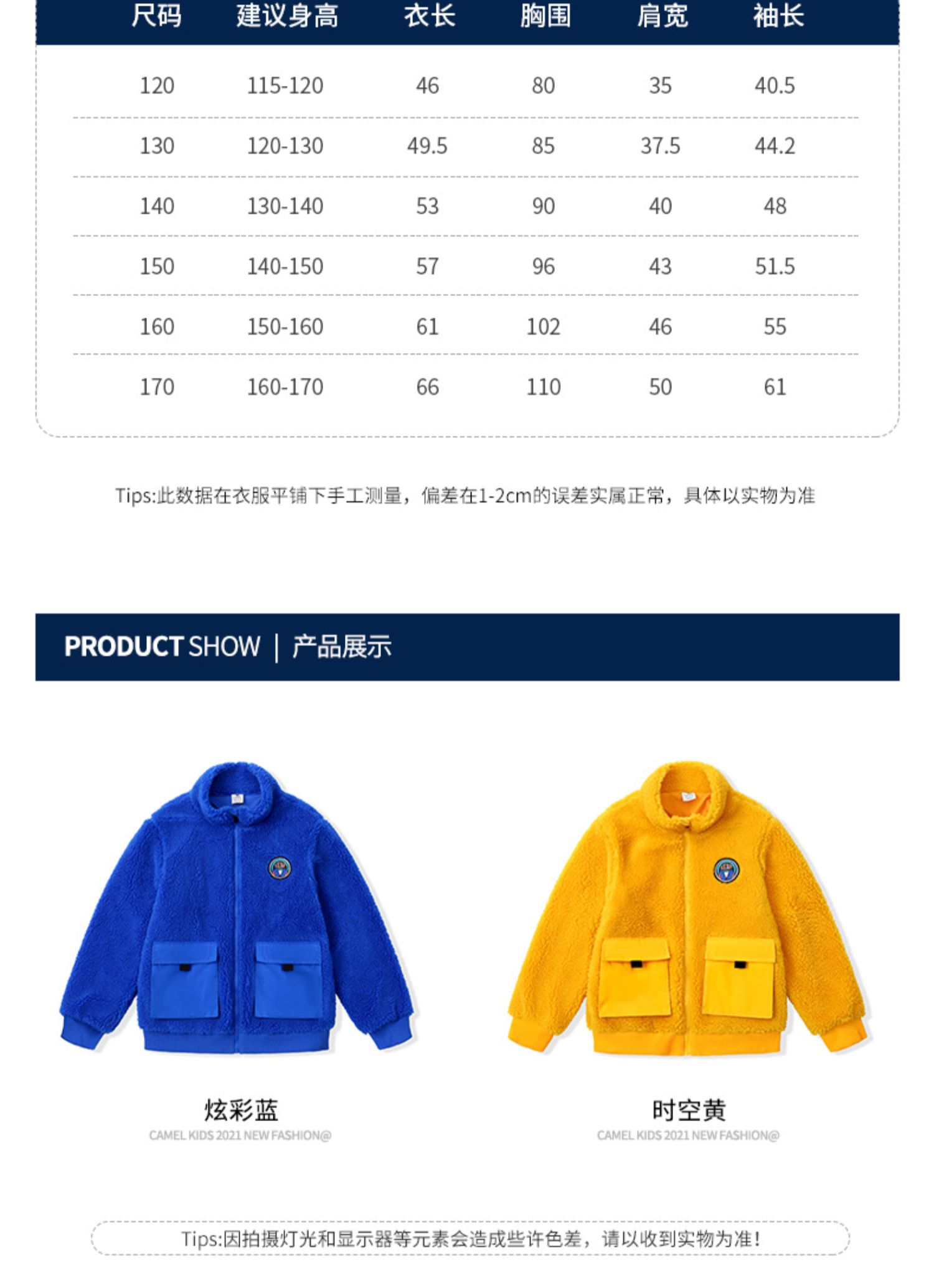 小骆驼儿童抓绒衣2024秋冬防风保暖珊瑚绒女童大童摇粒绒男童外套 D63CAIP011_A0W645951_DR32263797_A1W6NX807