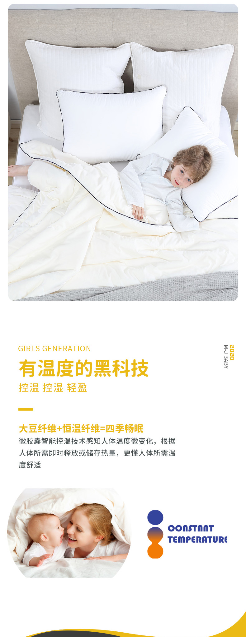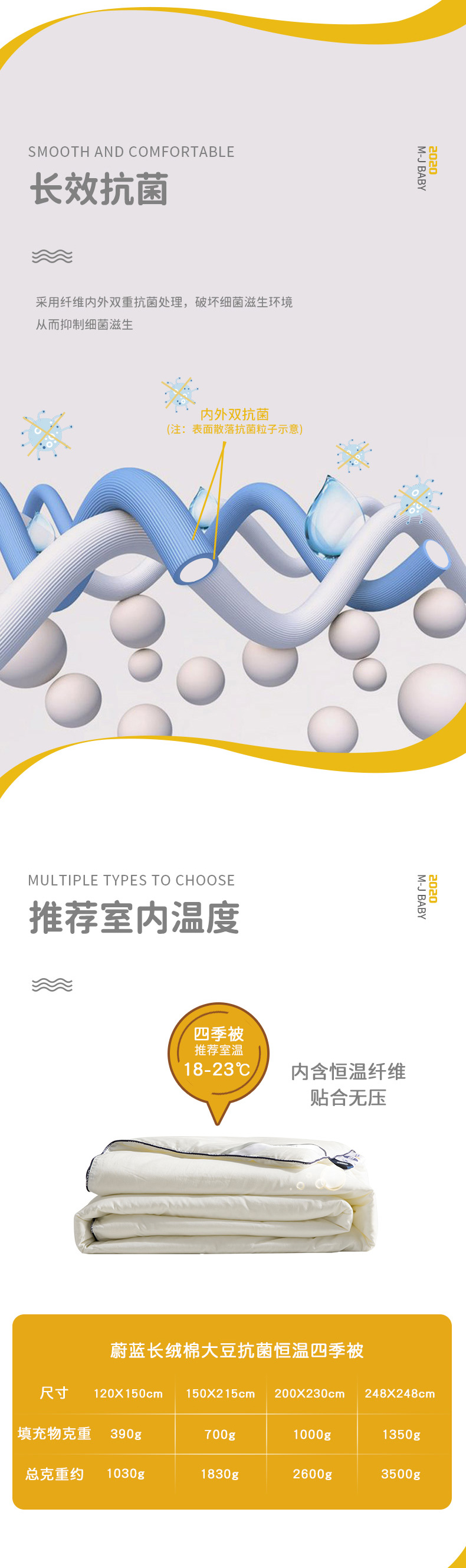 梦洁 蔚蓝长绒棉大豆抗菌恒温四季被(白)