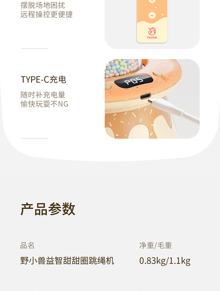 野小兽 甜甜圈智能跳绳机 自动甩绳电子计数 SR60M
