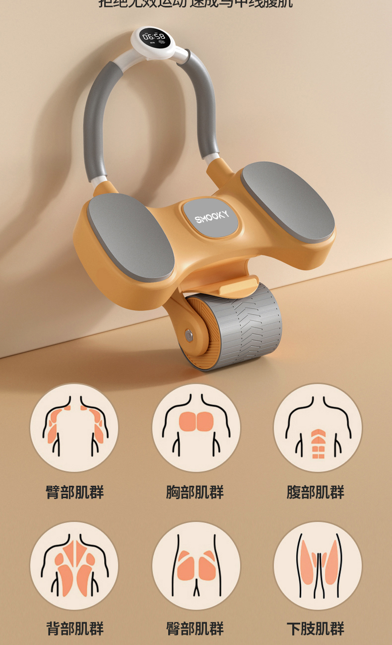 【稳固支撑 刹车回弹辅助】smooky平板支撑健腹轮 智能计时 平板支撑健腹锻炼二合一 优选
