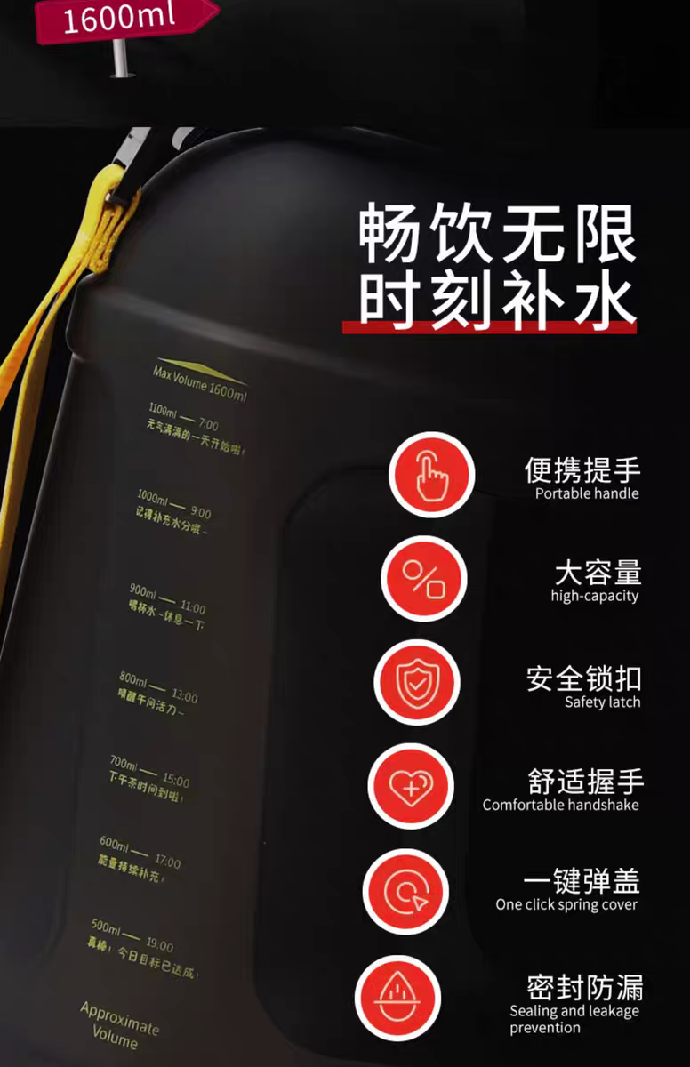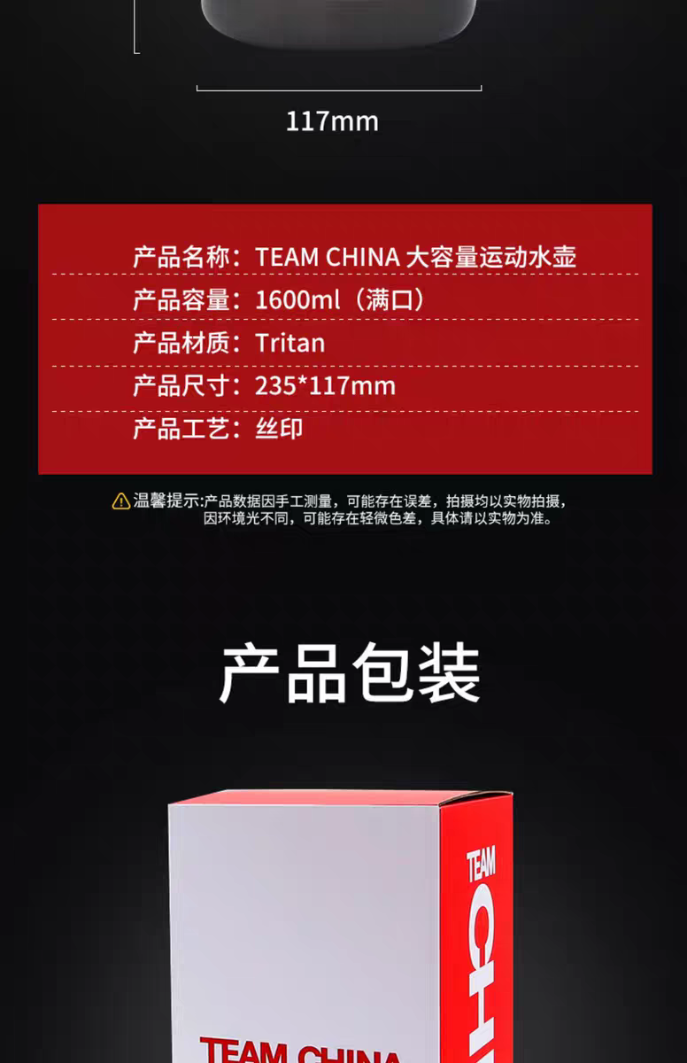 TEAMCHINA大容量运动水壶-1600ML