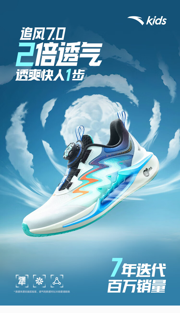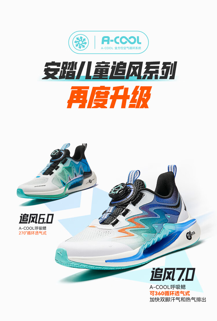 安踏儿童运动鞋女童追风7代跑鞋2025夏女大童透气鞋网面跑鞋322525518