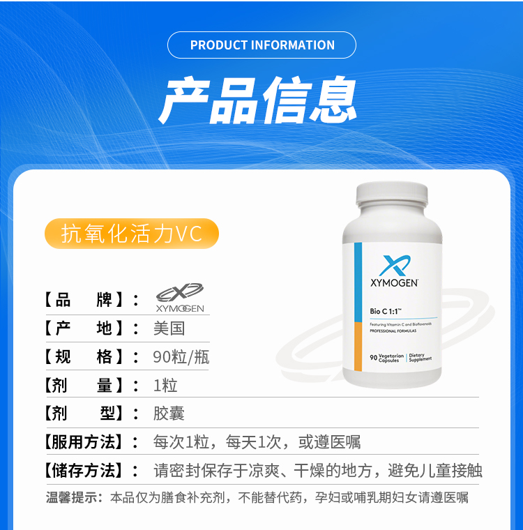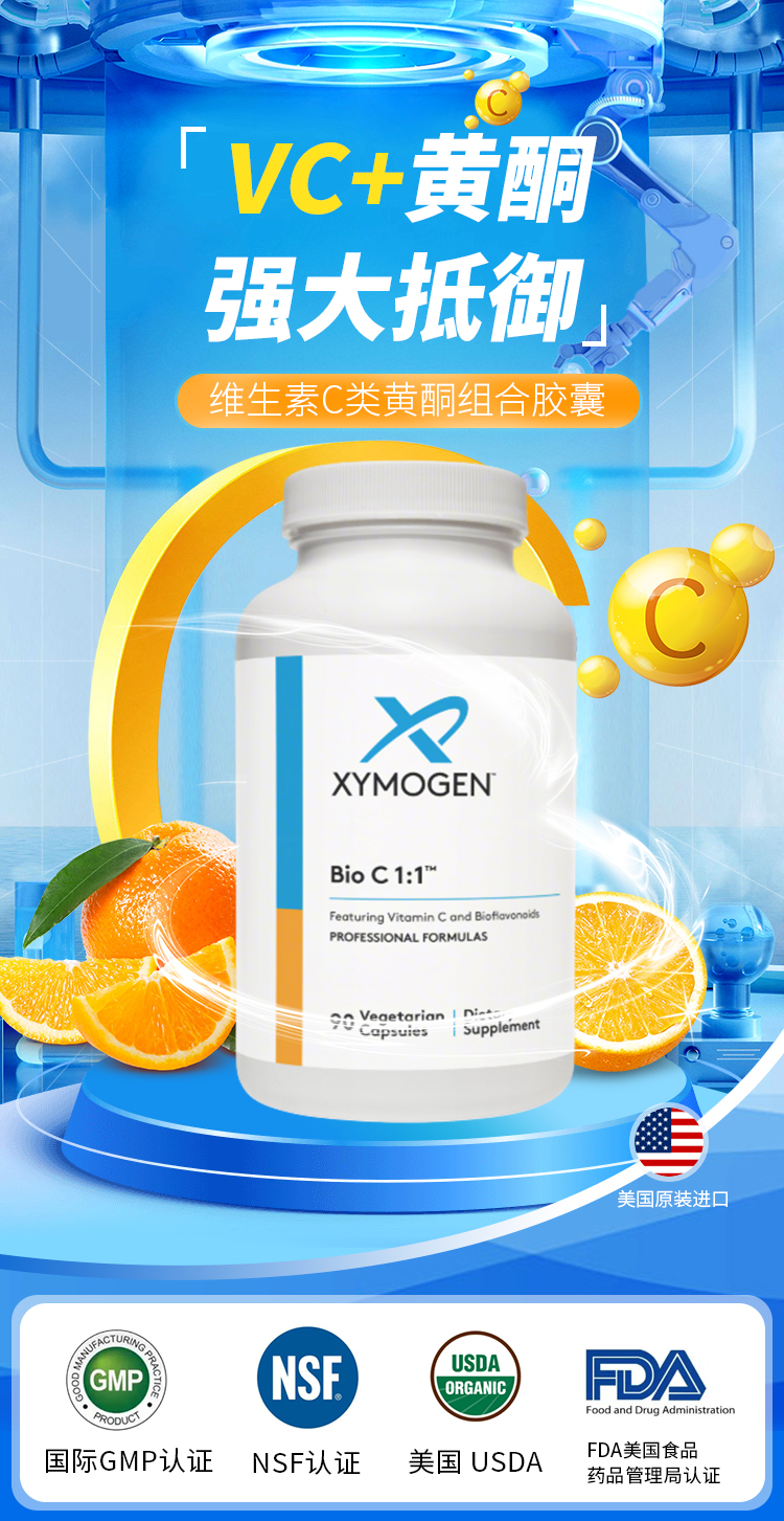 【效期至27年10月】维生素C类黄酮组合胶囊 XYMOGEN Bio C 1:1™ 90粒/瓶