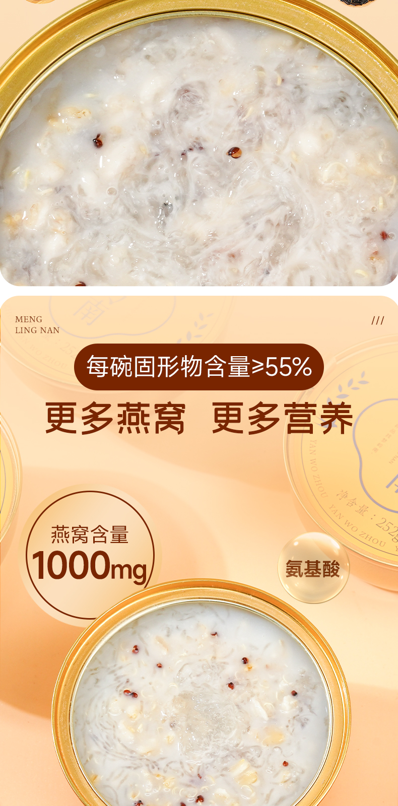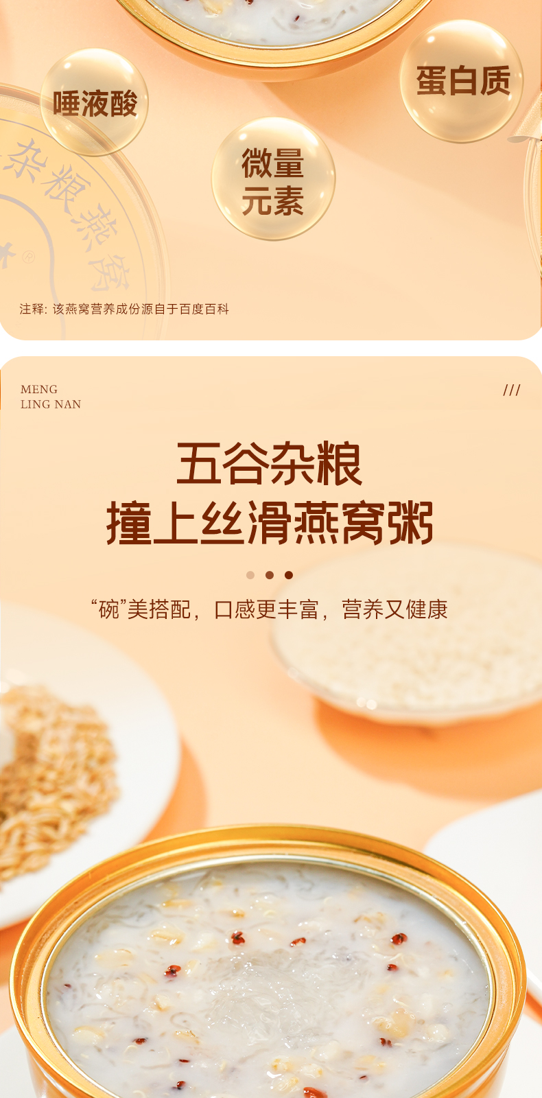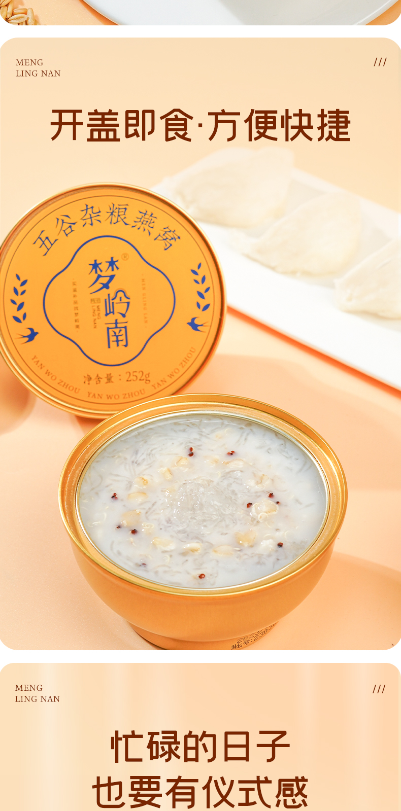 【五谷燕窝粥大碗装】梦岭南五谷杂粮燕窝粥 252g/碗 燕窝含量1000mg 1箱6碗装 低糖养生