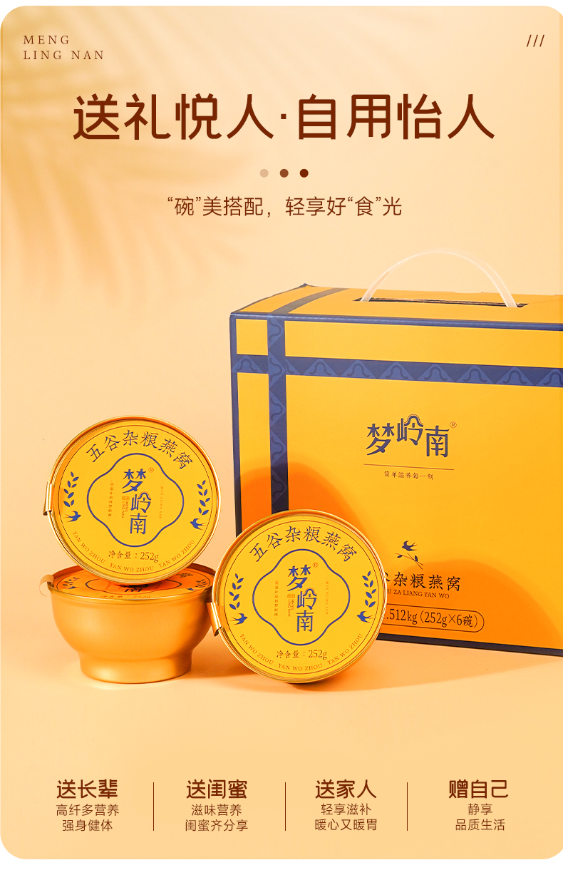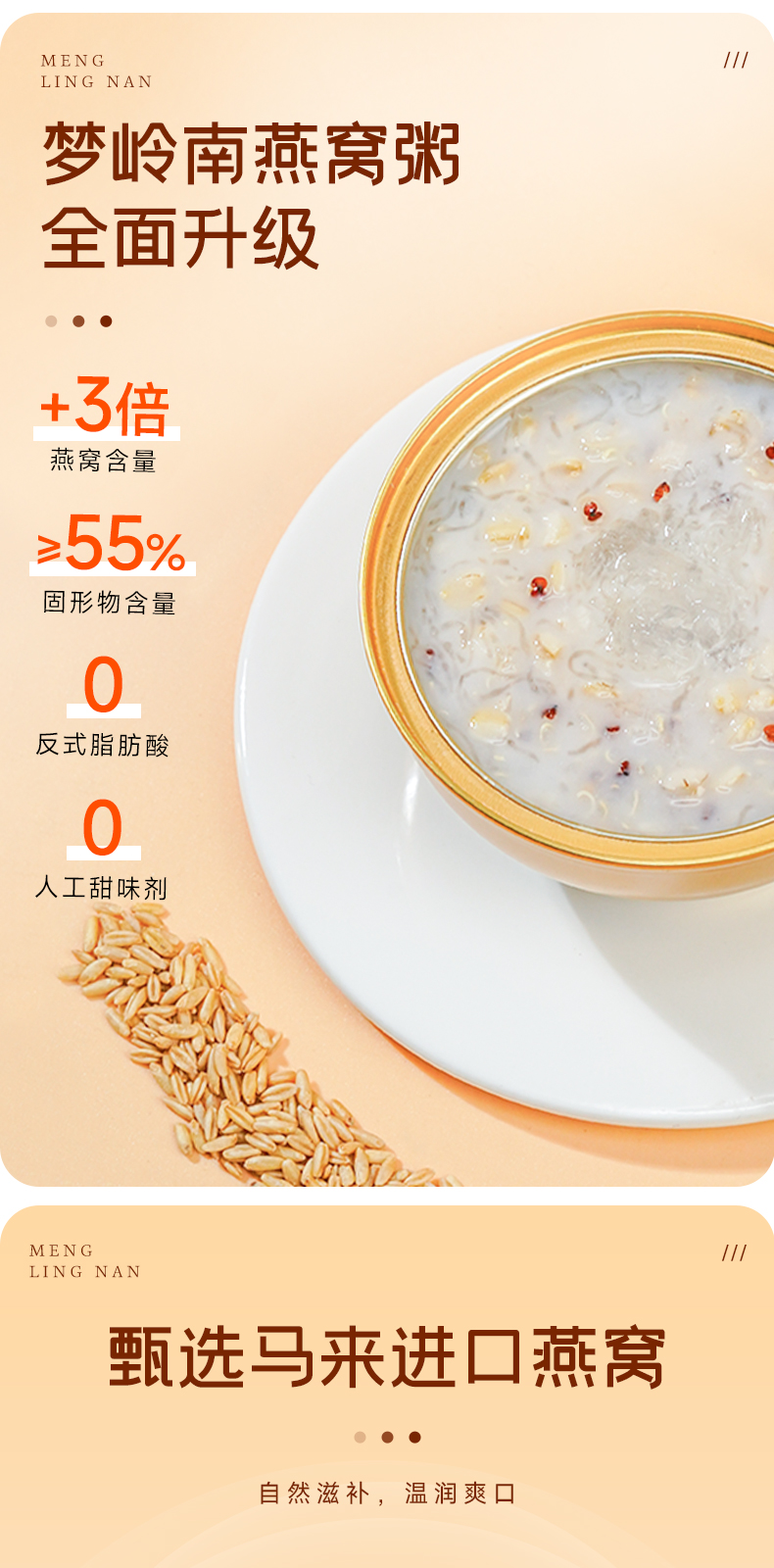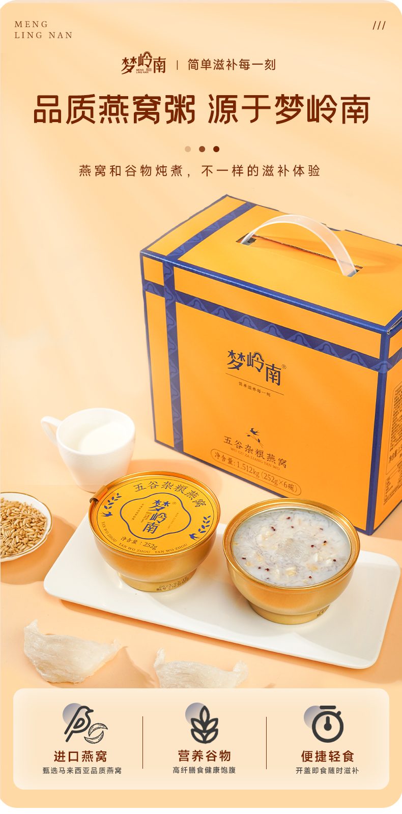【五谷燕窝粥大碗装】梦岭南五谷杂粮燕窝粥 252g/碗 燕窝含量1000mg 1箱6碗装 低糖养生