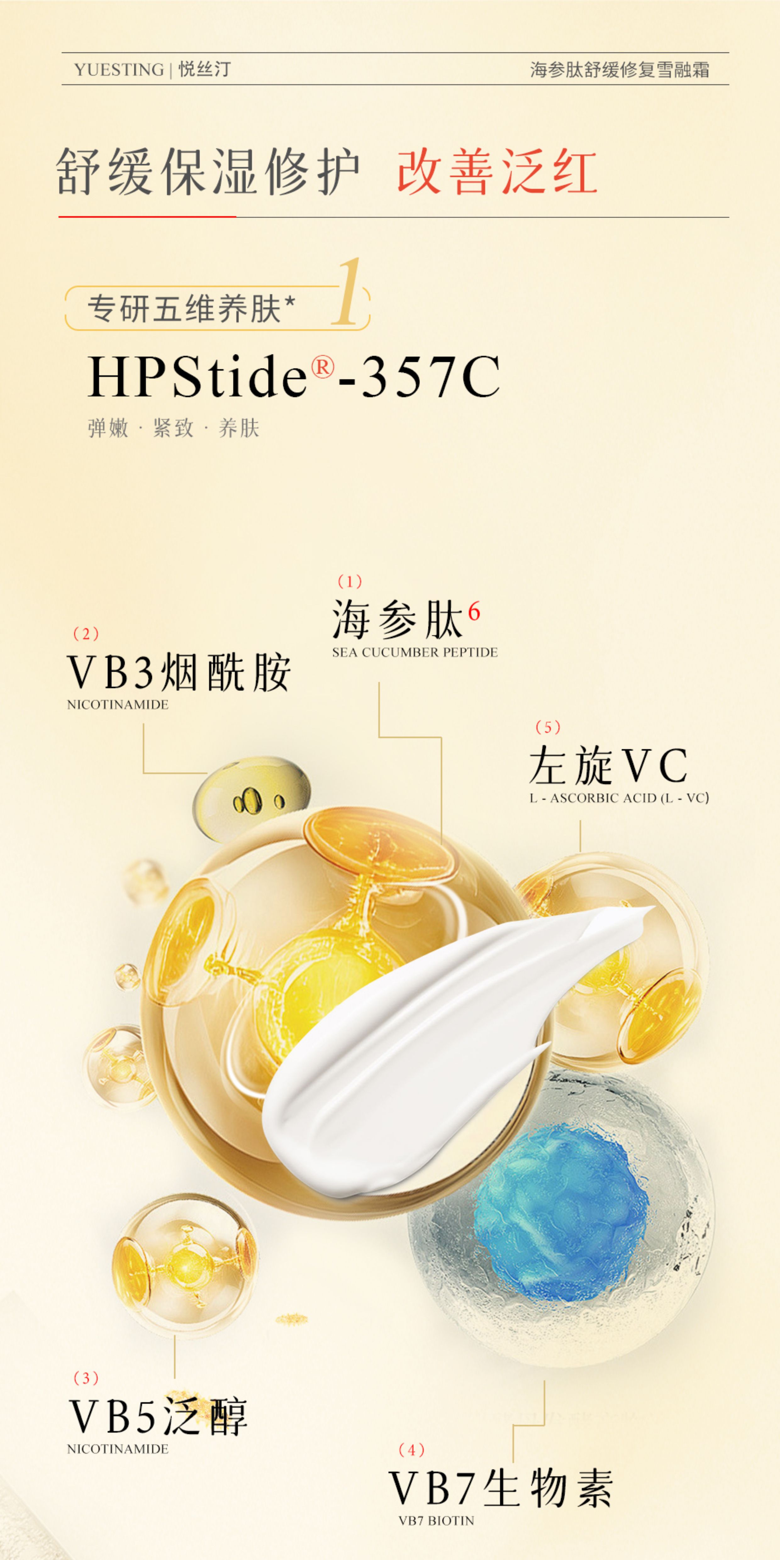 悦丝汀海参肽舒敏修复雪融霜 舒缓保湿敏感肌适用修护紧致面霜50g