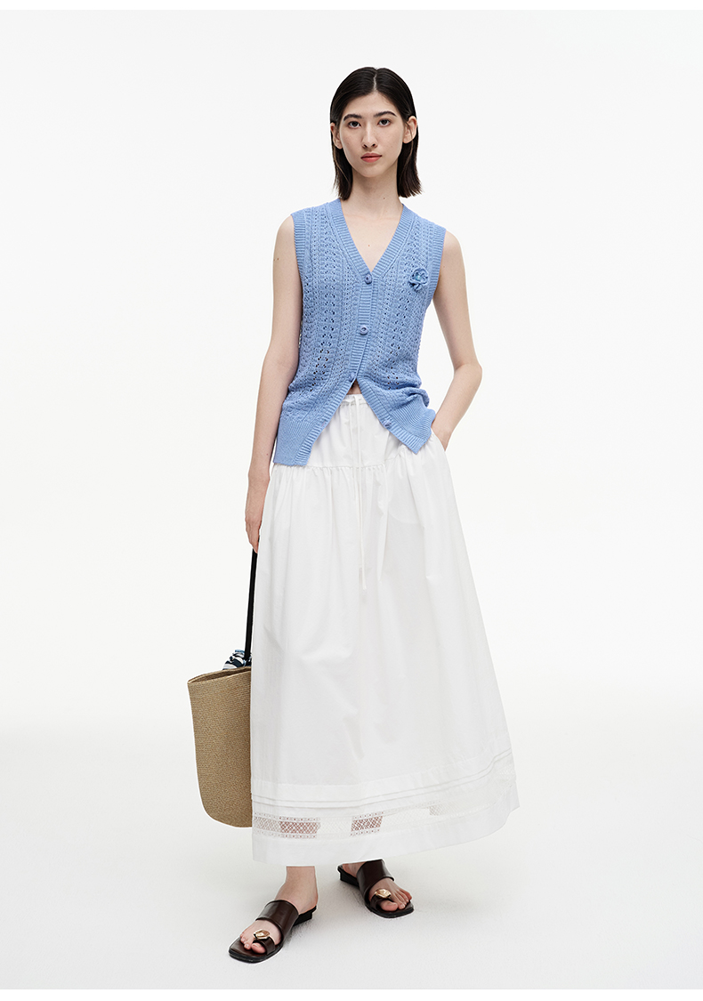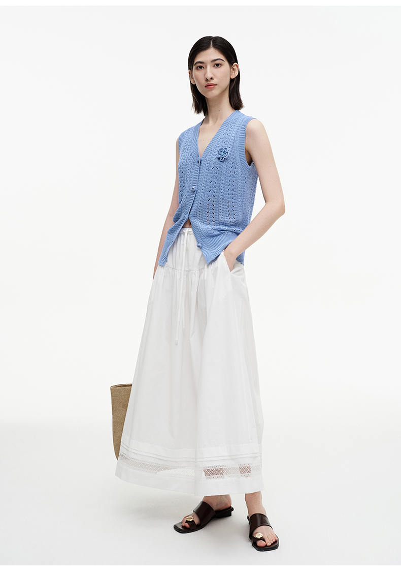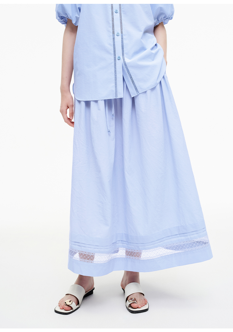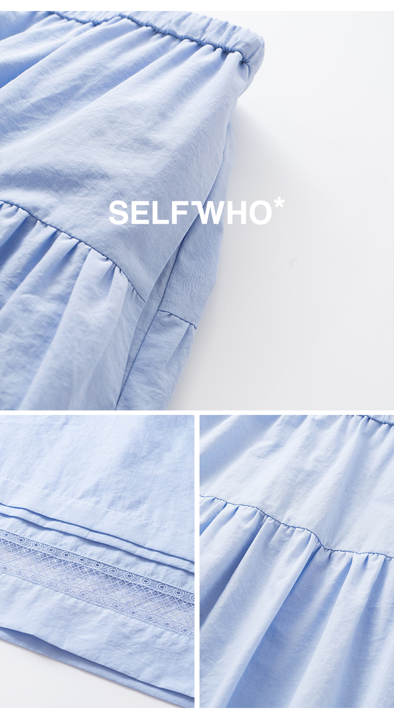 SELFWHO绿绒蒿系列镂空花边拼接半身裙女2025秋新款松紧腰中长裙