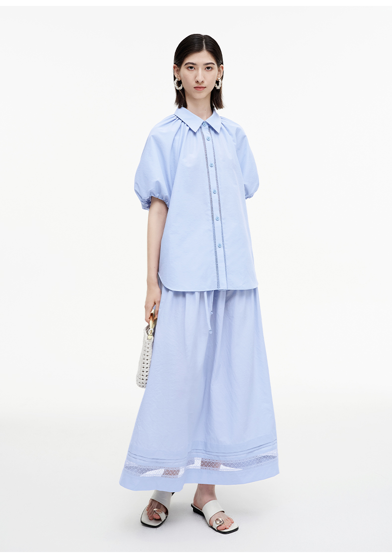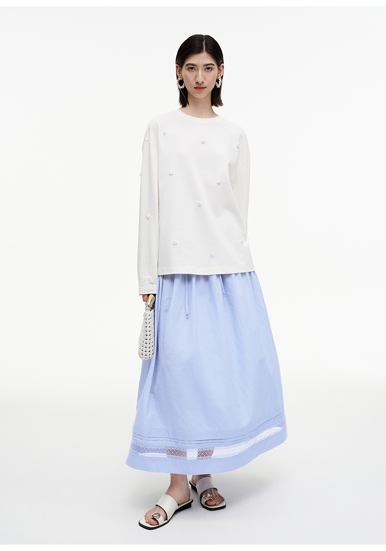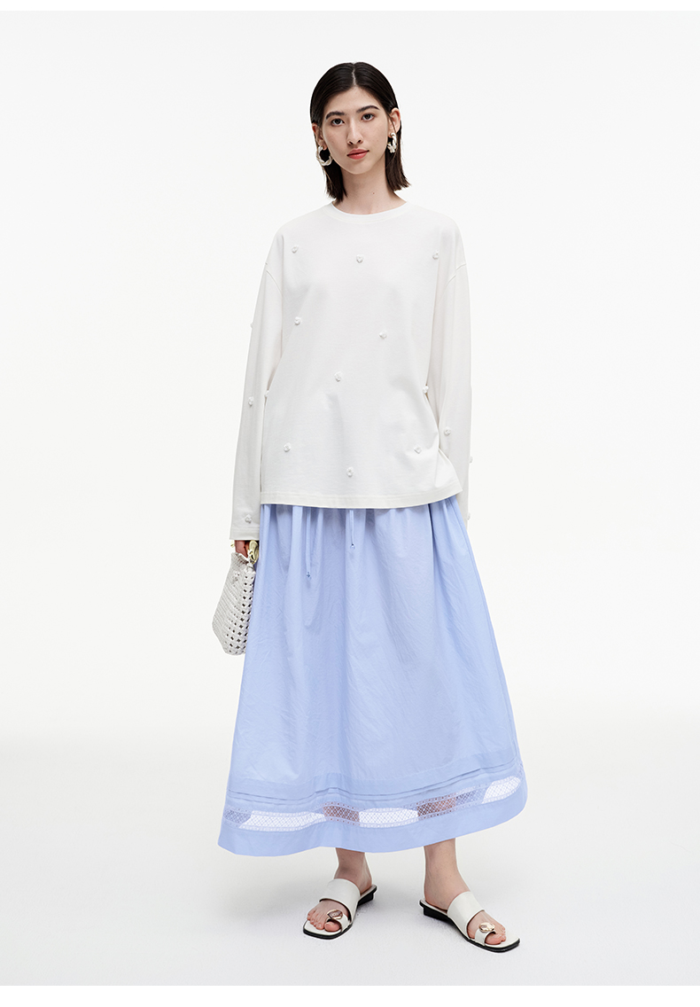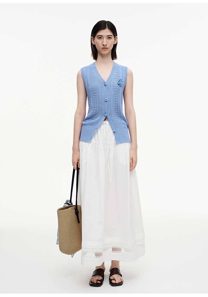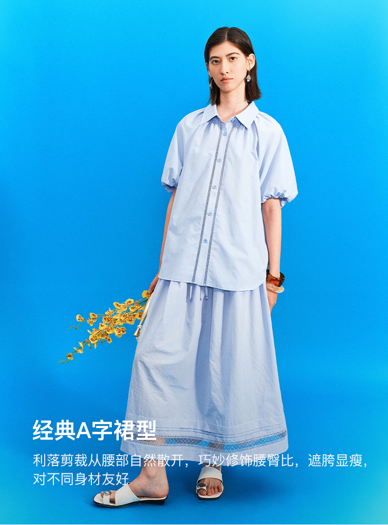 SELFWHO绿绒蒿系列镂空花边拼接半身裙女2025秋新款松紧腰中长裙