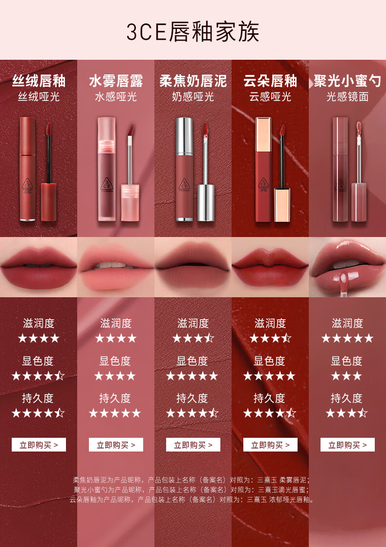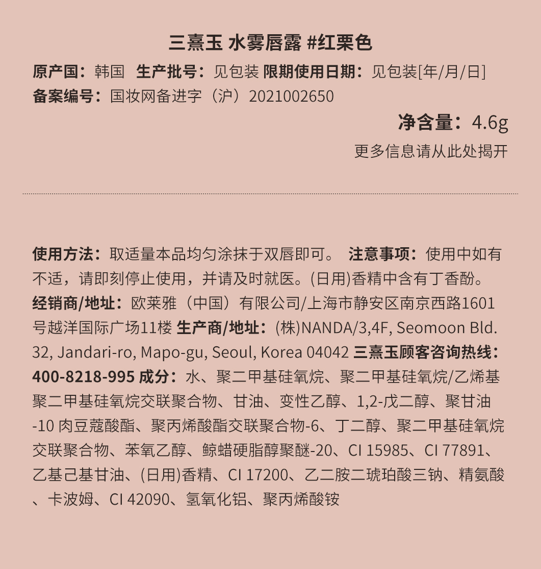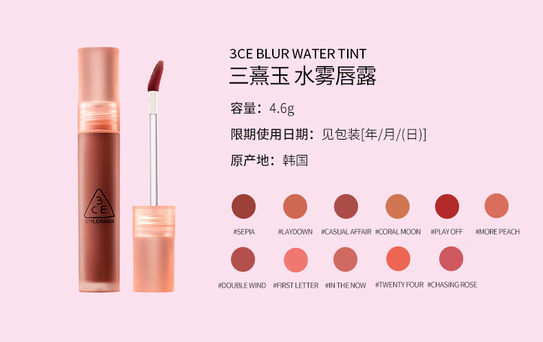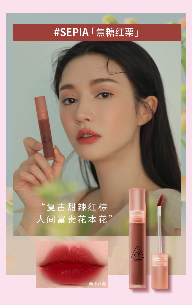 3CE 水雾唇露 #SEPIA 焦糖红栗4.6g
