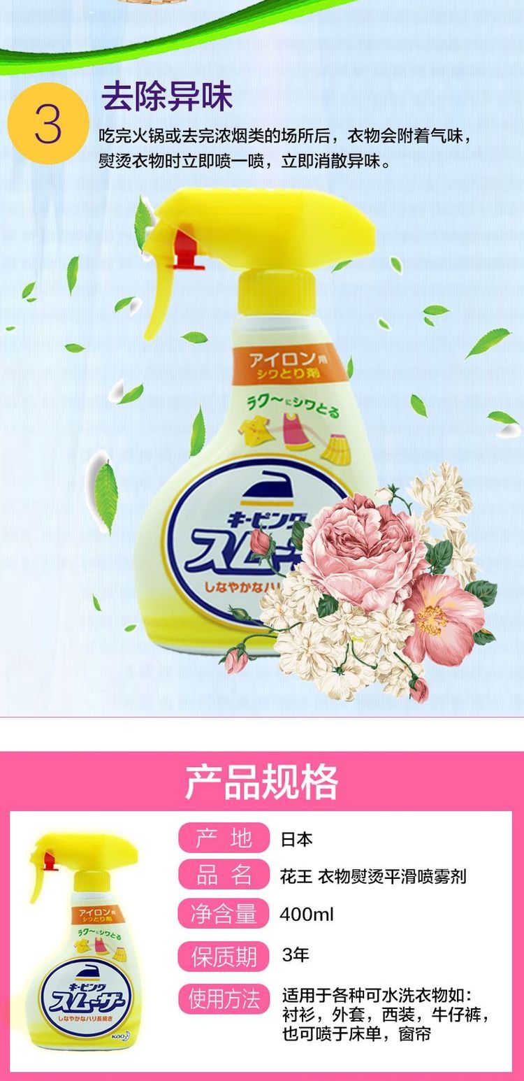 KAO 花王熨烫定型喷雾 黄色 400ml【保质期:2025年8月21日】