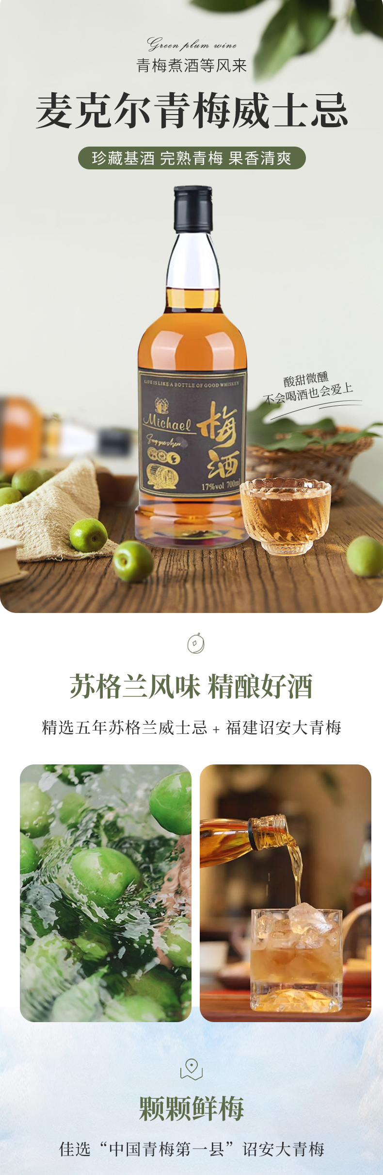 【麦克尔Michael威士忌梅酒】酸甜与醇厚交织,尽享微醺时刻 17%VOL 1919全球酒水连锁专柜款 带手提礼盒