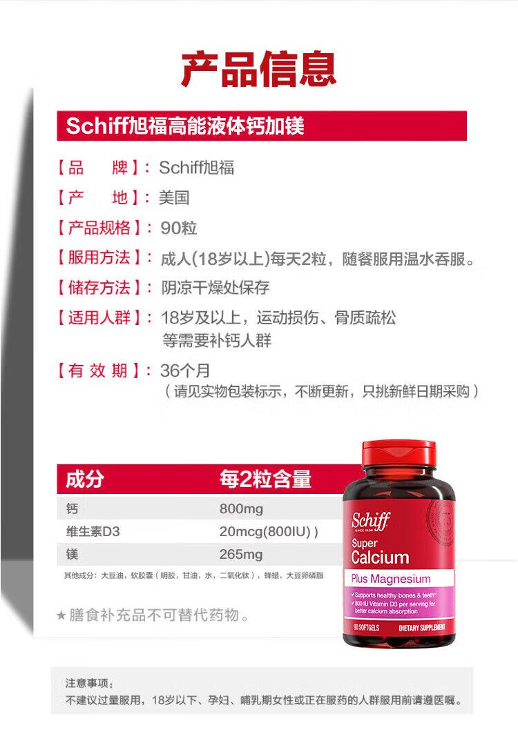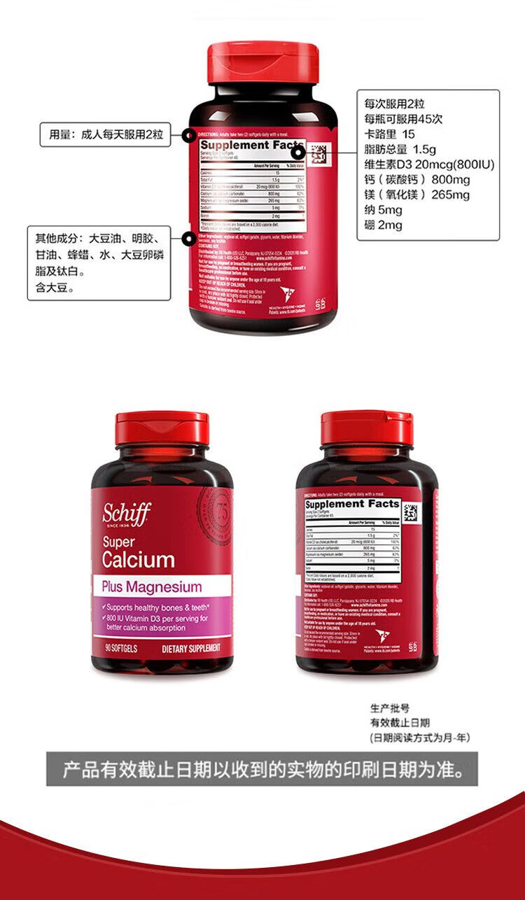 【保税仓】SCHIFF超级钙加镁加VD90粒