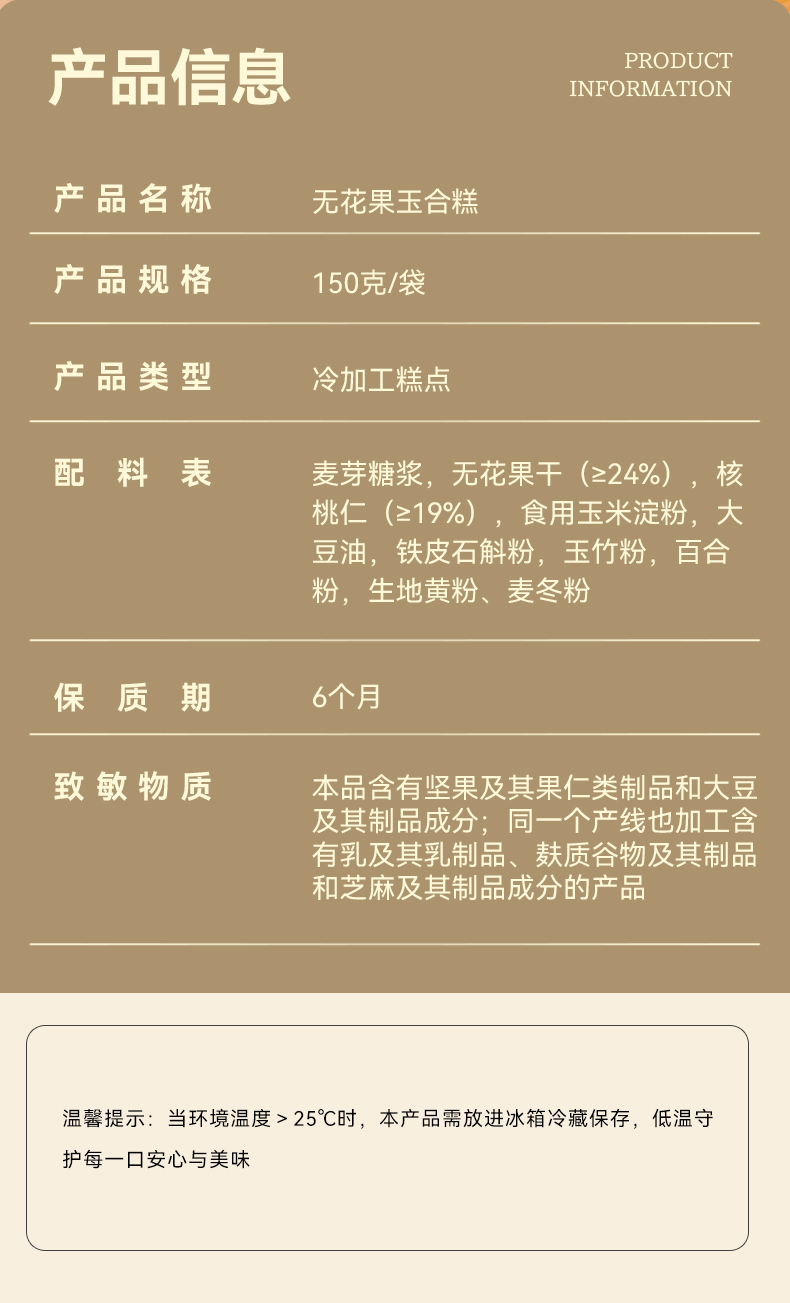 甘之颐 无花果玉合糕 150g/袋 元气小雌糕 养生小零食