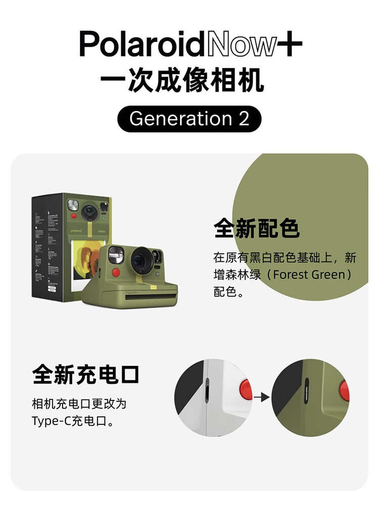 宝丽来(Polaroid) Now+ 第二代 Gen2 NOW+2 一次即可成像 拍立得相机 【官方标配 无相纸】
