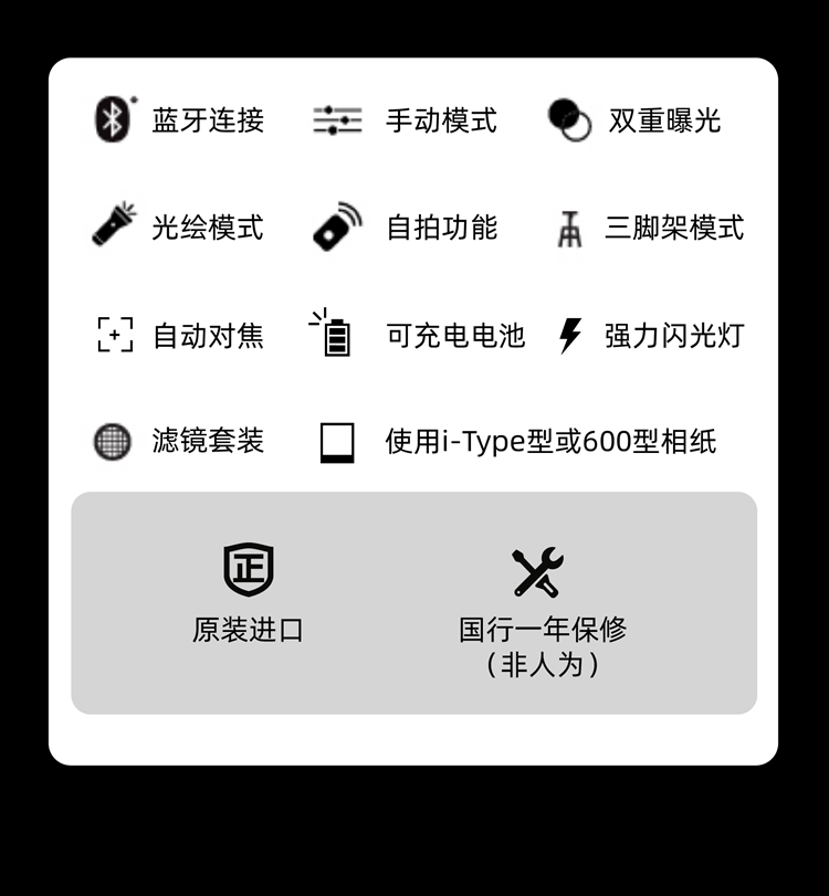温馨提示:此产品不含相纸,需另外单独购买,适用I-Type、600型系列相纸