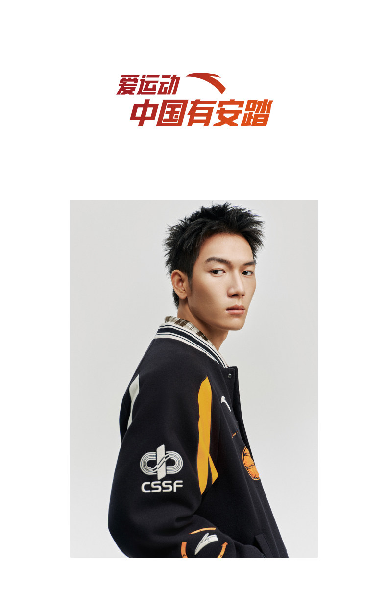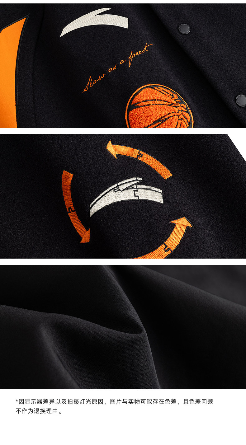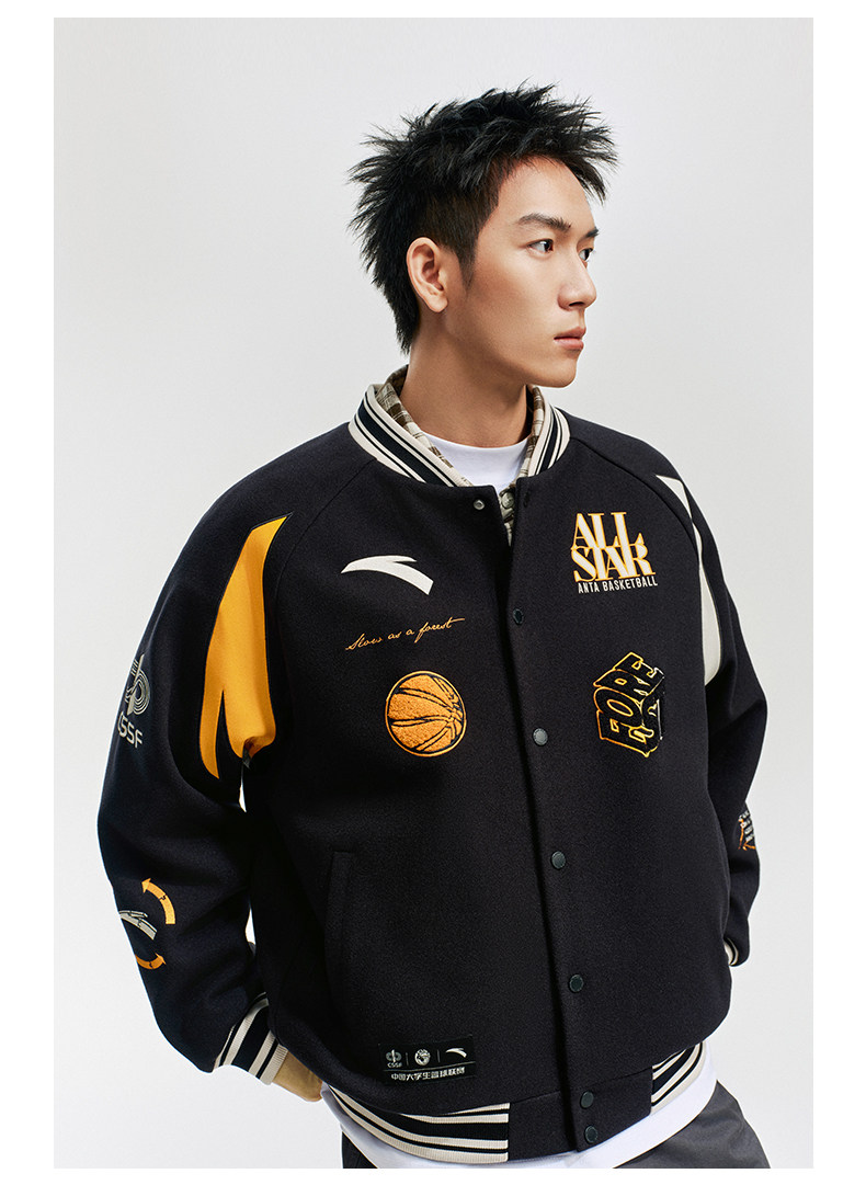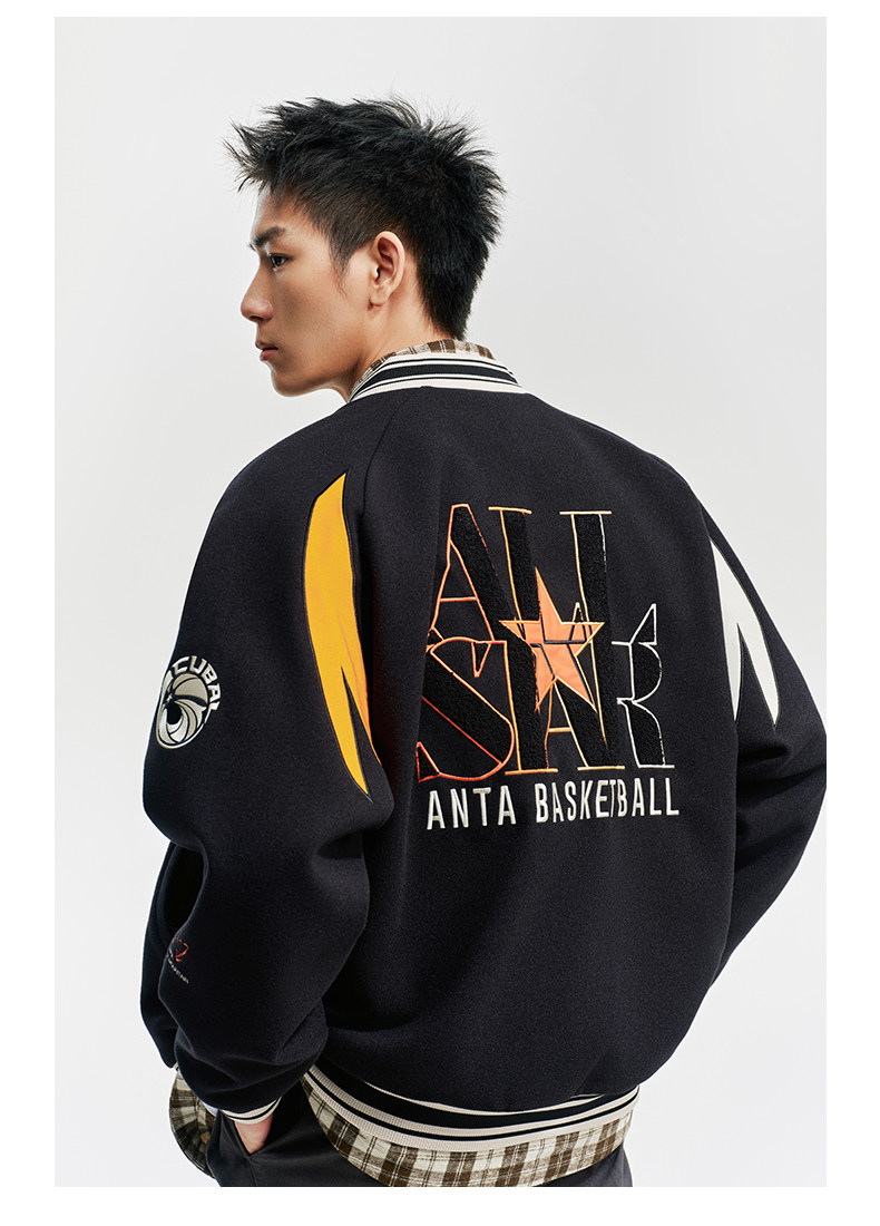 安踏美式高街棒球服夹克男士新款字母刺绣撞色休闲外套152611738