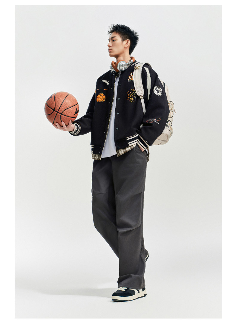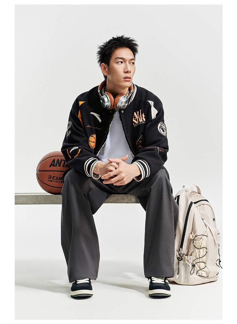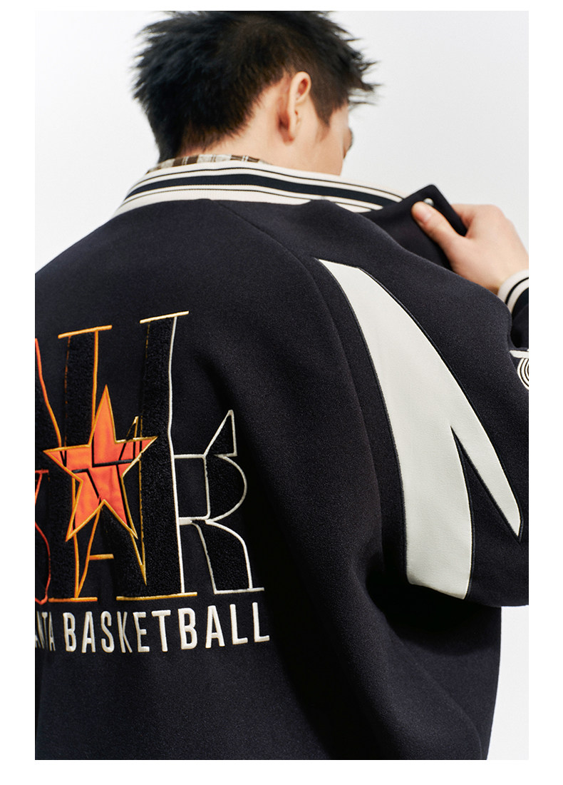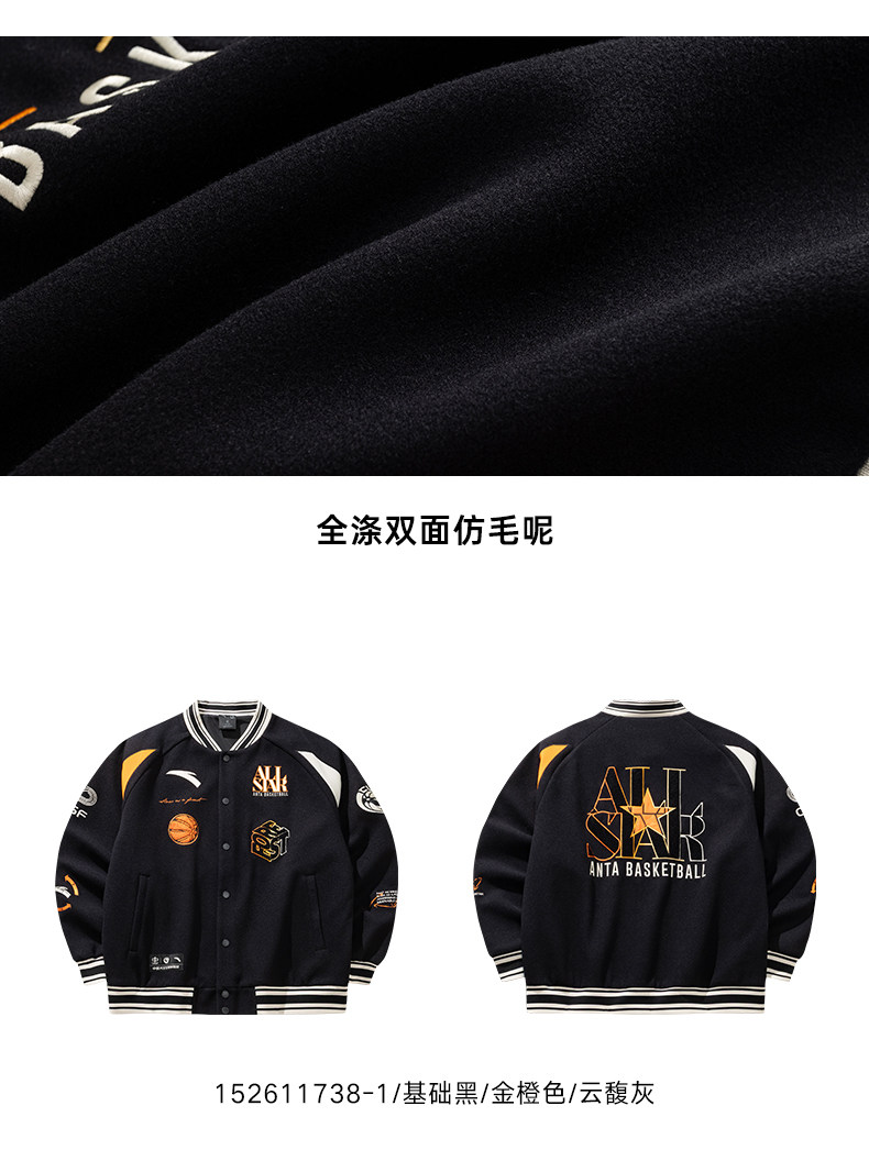 安踏美式高街棒球服夹克男士新款字母刺绣撞色休闲外套152611738
