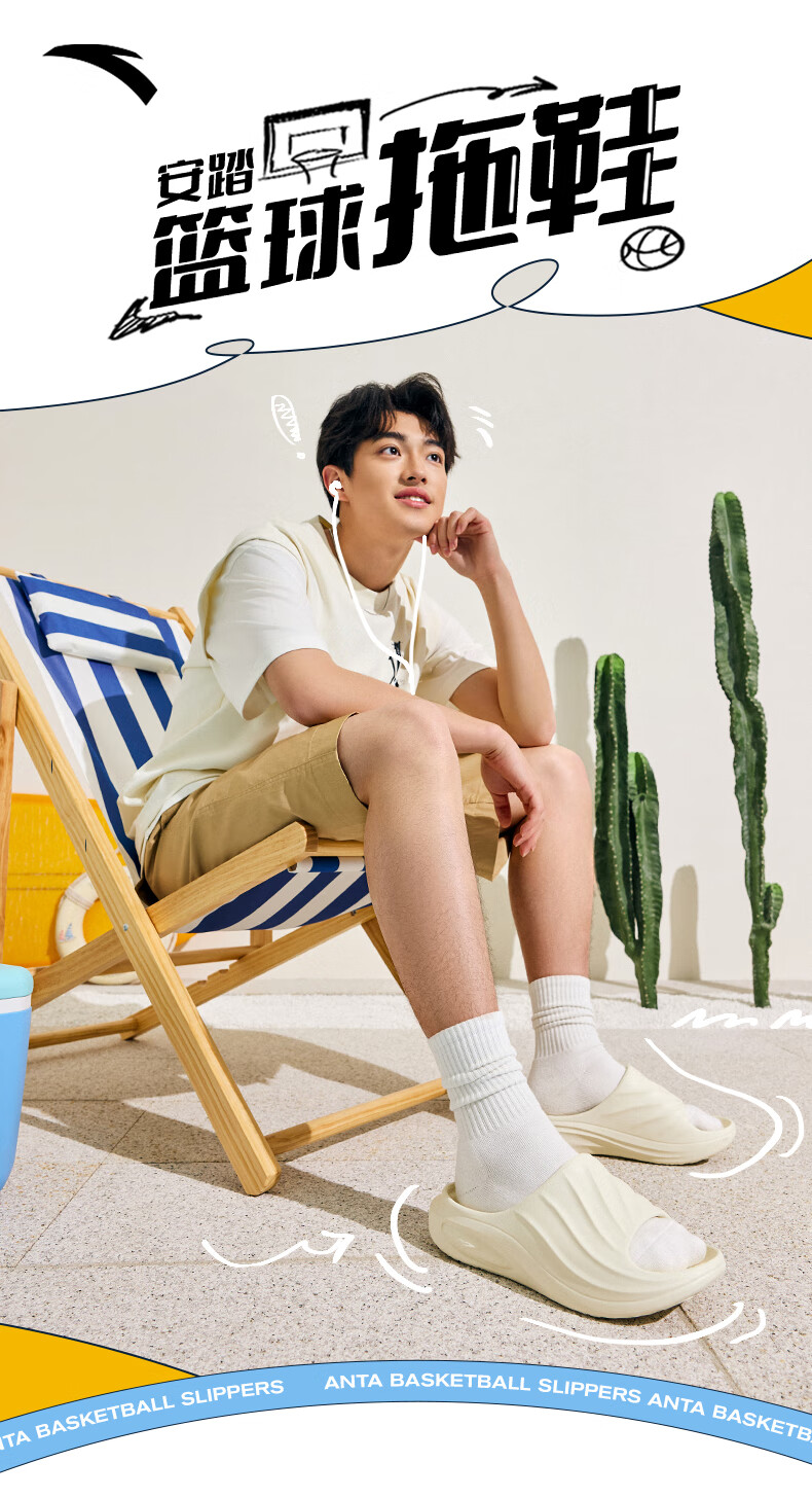 安踏篮球拖鞋男子凉拖鞋男鞋户外沙滩鞋凉鞋商场同款112521801Q