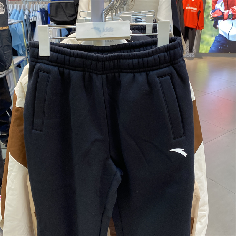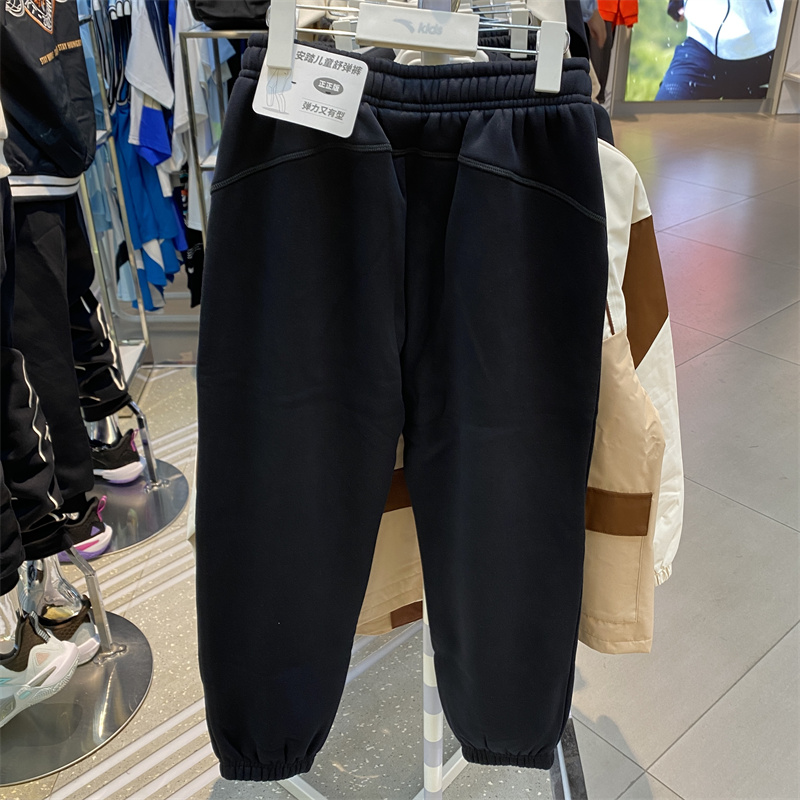 安踏儿童24冬季新款男女大童黑色加绒针织运动长裤372447701