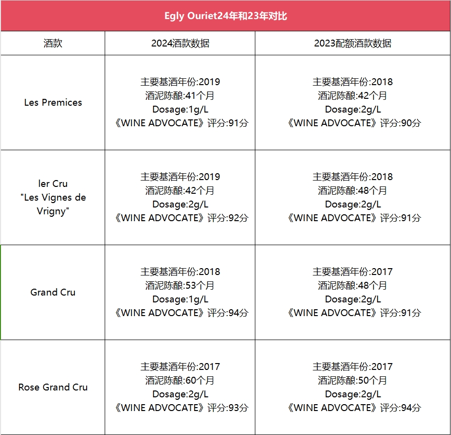 这款桃红香槟使用的葡萄比例及来源于旗舰款Tradition Grand Cru相同,特别的是在基酒中加入酒庄唯一一款静态干红Ambonnay Rouge Cuvée des Grands Côtés Vieilles Vignes进行调色,这支干红常被拿来和勃艮第特级园PK,也正是这款酒在进入当地的米其林三星餐厅酒单后才令Egly-Ouriet 声名大噪。