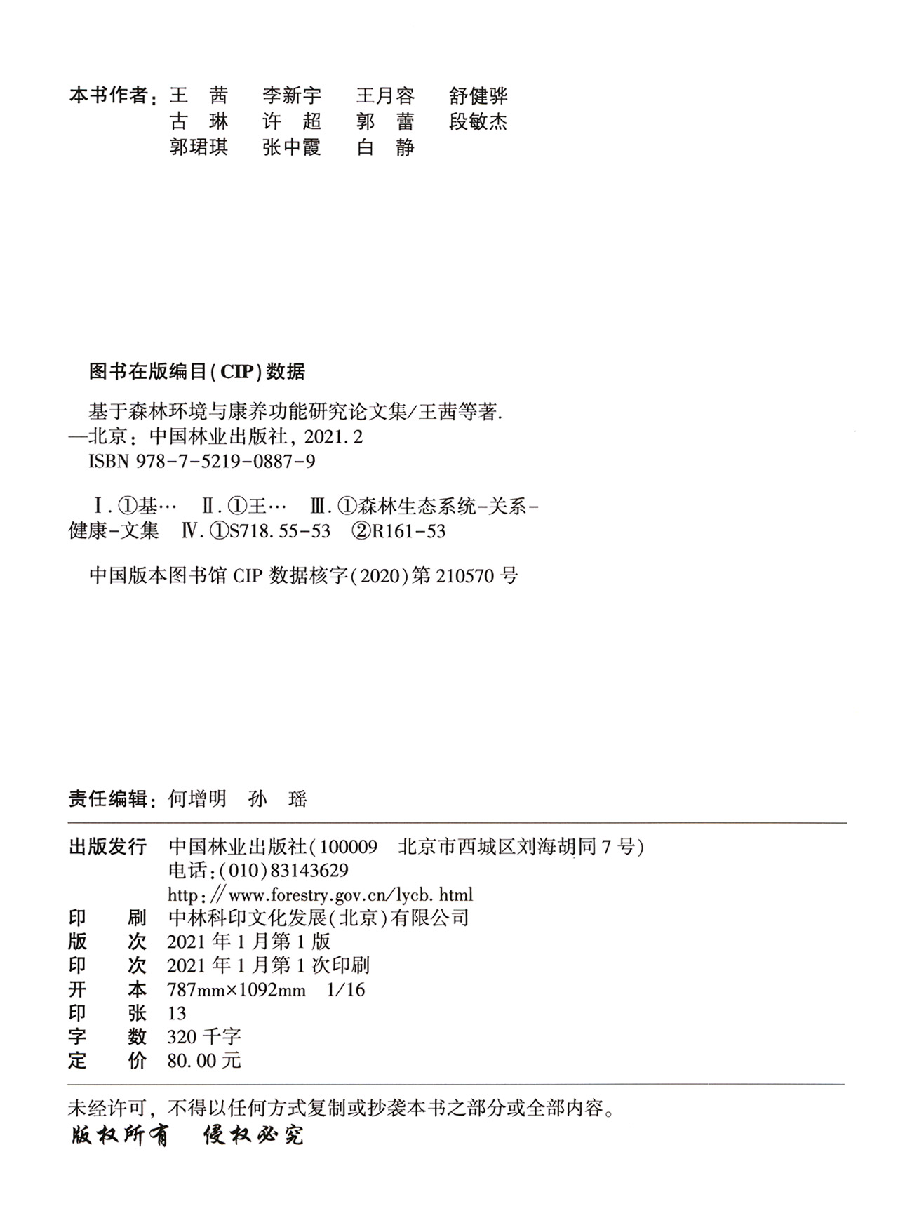 基于森林环境与康养功能研究论文集 王茜//李新宇//王月容//舒健骅//古琳 0887 中国林业出版社
