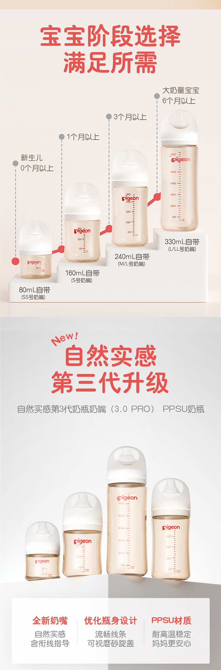 贝亲自然实感Ⅲ宽口径PPSU奶瓶AA189-194