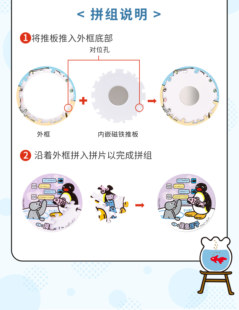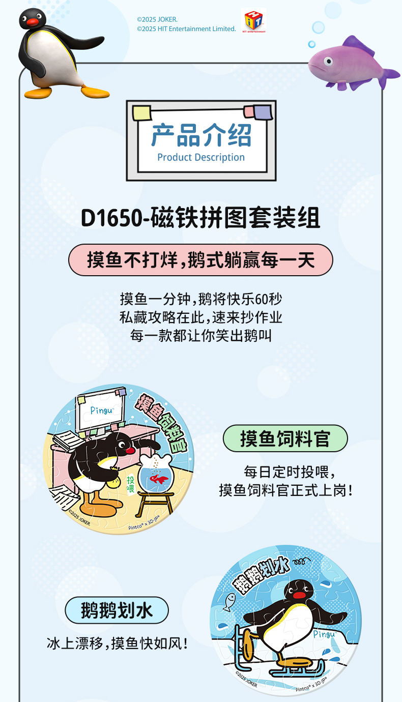 96片 磁铁拼图套装 D1650 Pingu磁铁拼图套组-摸鱼日常系列