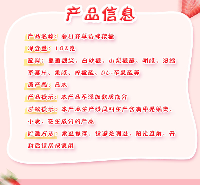 春日井草莓味软糖102g/袋