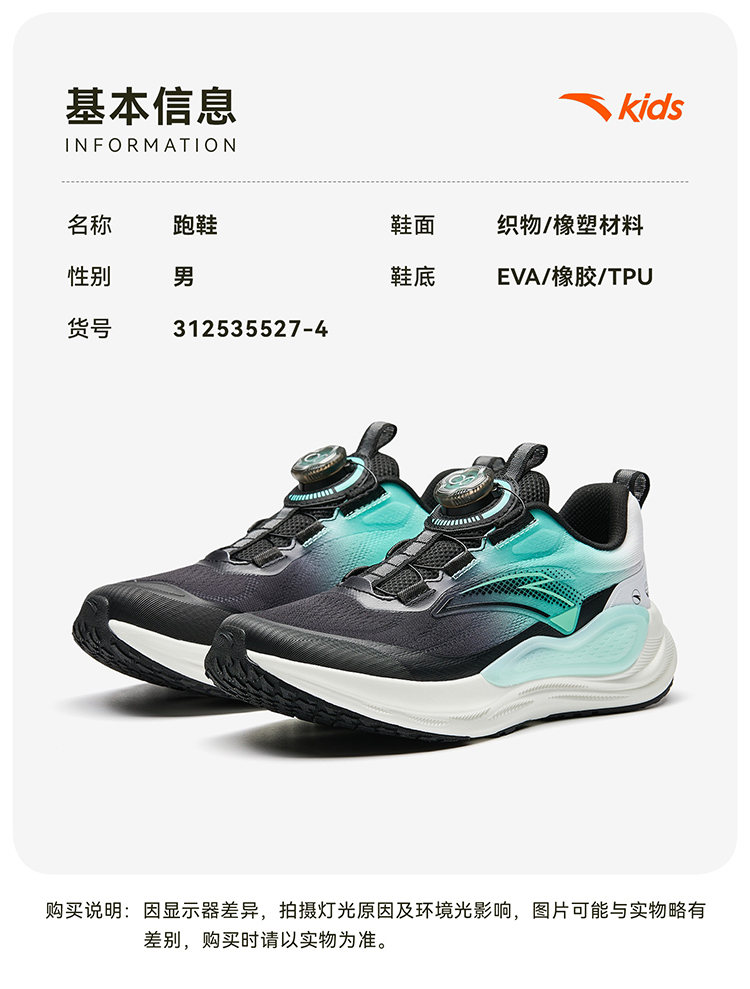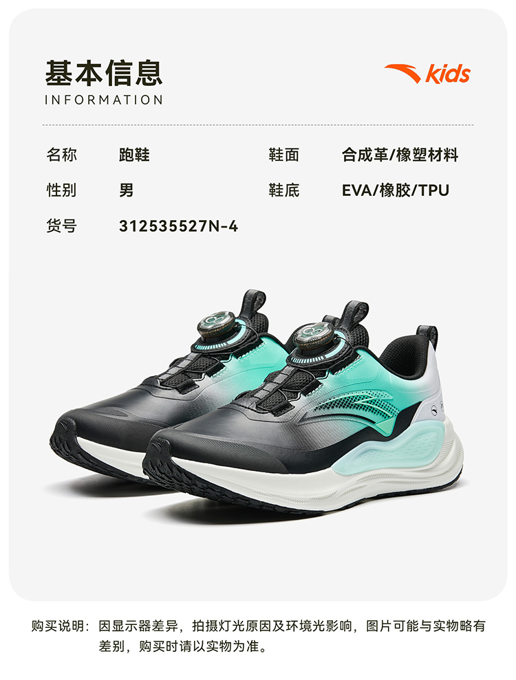 安踏儿童PG7运动鞋男童跑鞋2025秋季新款鞋旋钮扣鞋儿童跑鞋312535527