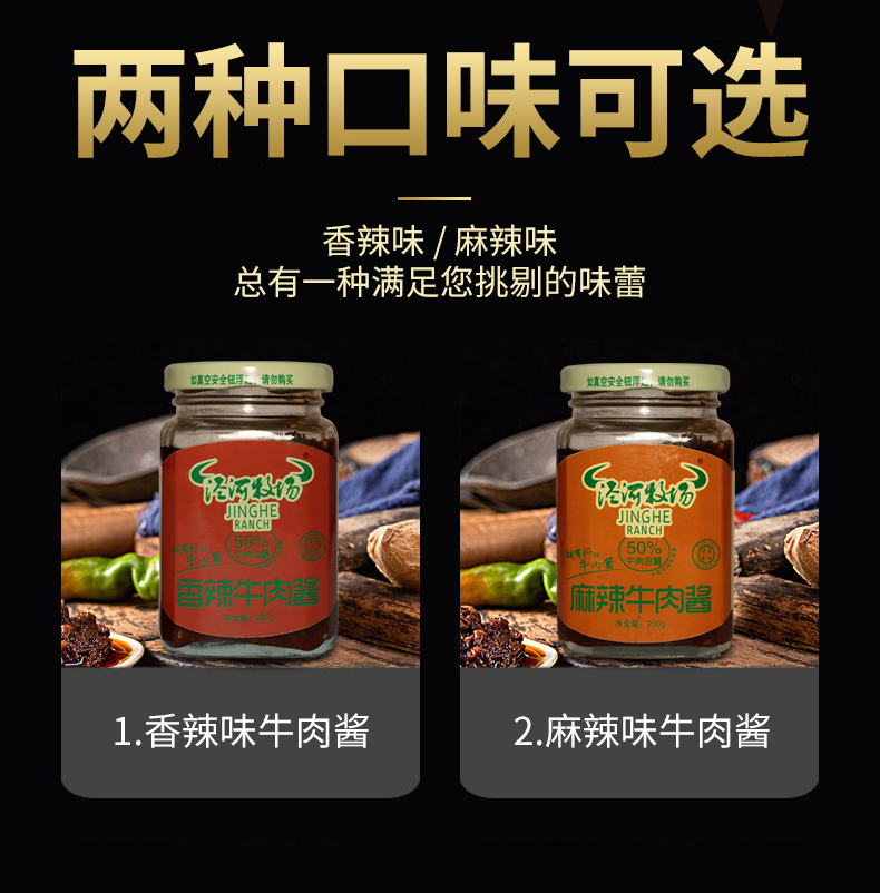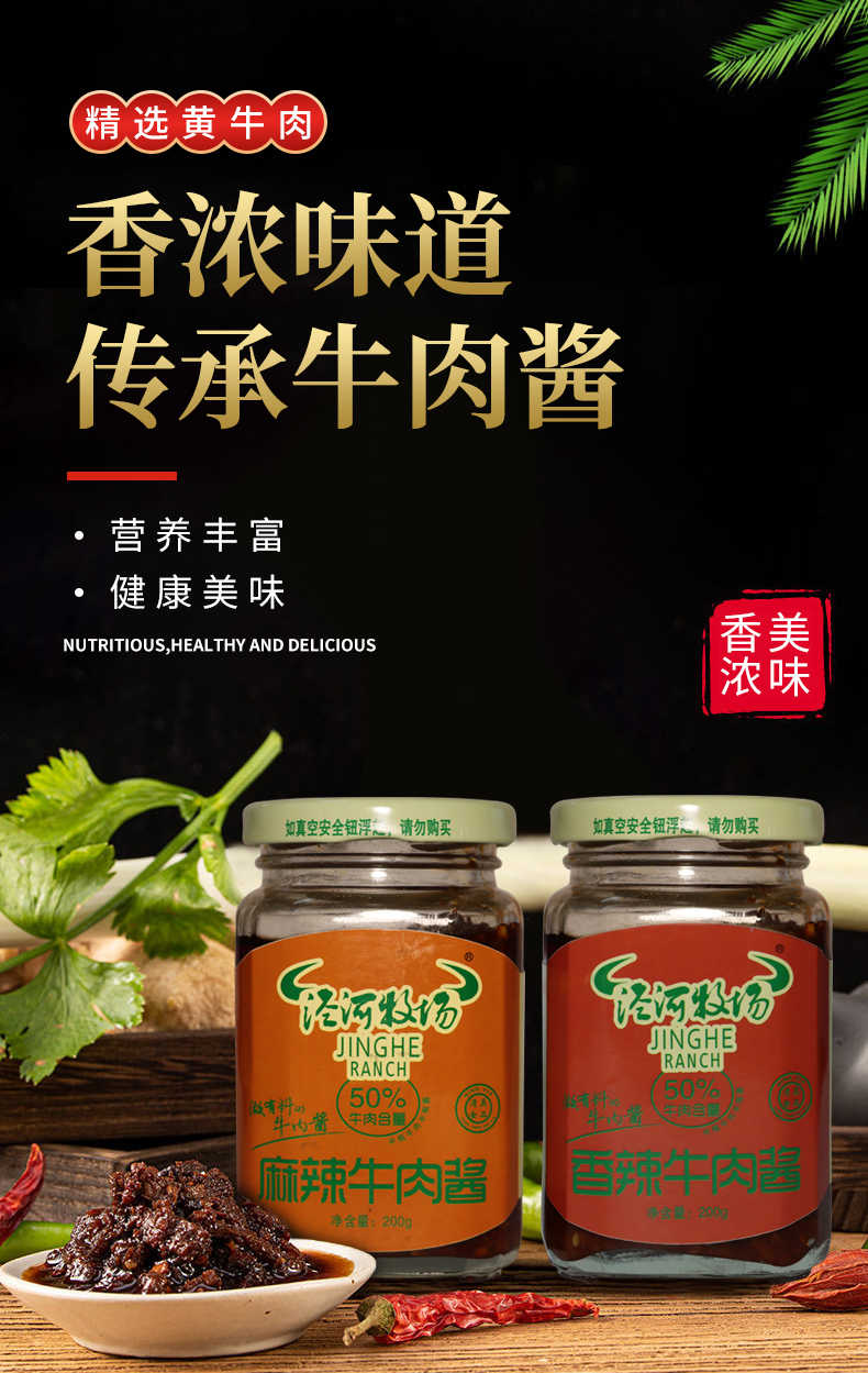 泾河牧场牛肉酱200g 【香辣味、麻辣味】(KBJ)(仅限福建省内配送,满400元包邮)