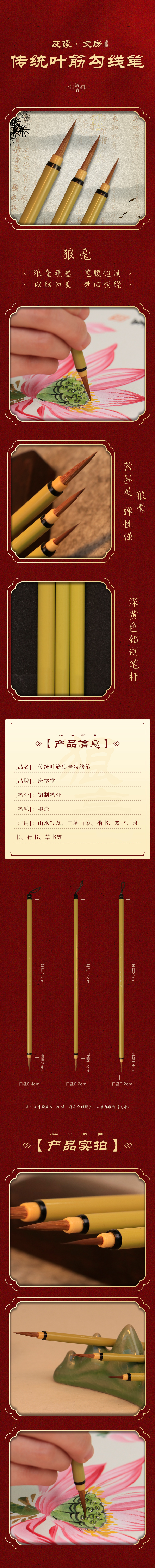 【庆学堂】传统叶筋狼毫勾线笔毛笔
