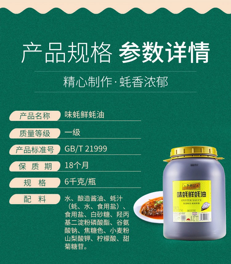 【仅供集采】李锦记味蚝鲜蚝油6kg*2桶 餐饮专用