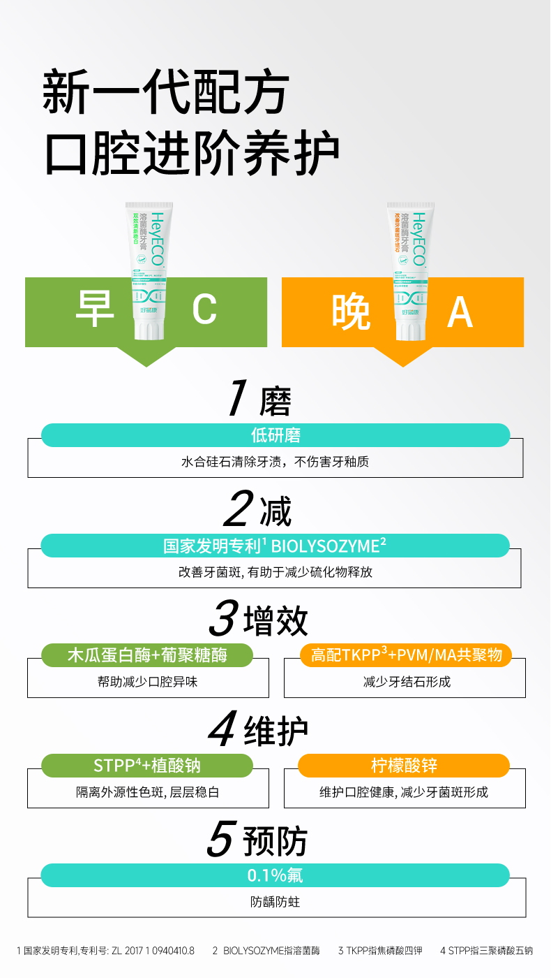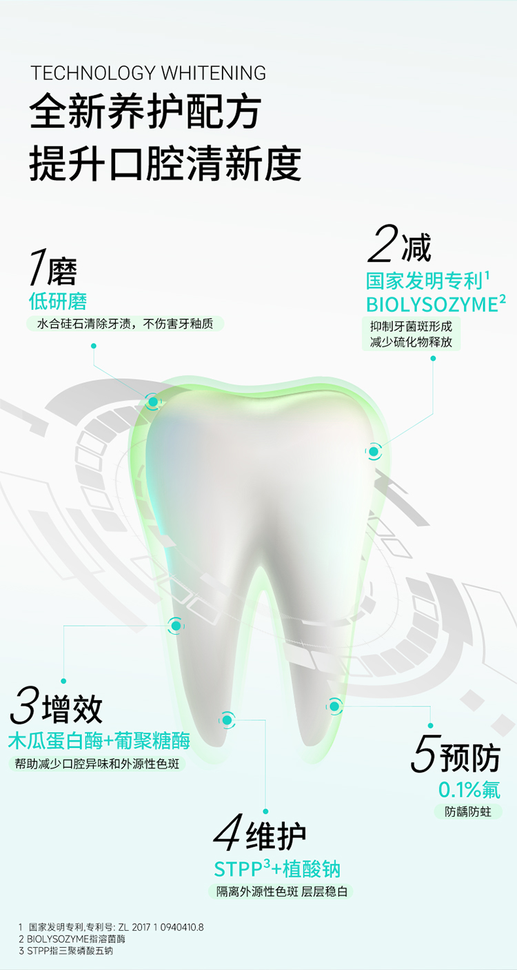 【早C】复配双酶:木瓜蛋白酶+葡聚糖酶,分解食物残渣,从外隔离糖分色素,抗糖抗酸,解决同类产品短暂改善口气或"以香盖臭"的痛点,帮助减少口腔异味🌈