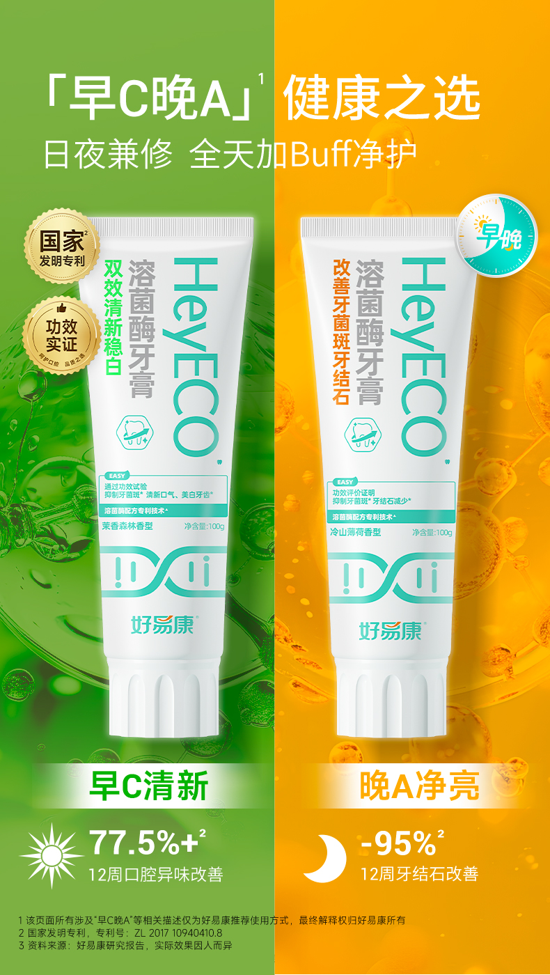 牙膏届的早C晚A组合☕️【好易康-清新稳白牙膏+牙结石牙膏】🦷0漂白0药物,温和护齿不刺激,药房复购率高达 70%❗硬核实力拿捏🌿