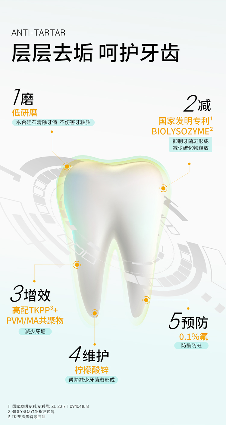 【晚A】复配成分:高配TKPP3+PVM/MA共聚物,减少牙垢,清洁牙齿上的黑黄牙渍,瓦解牙结石,预防牙石沉积🧹